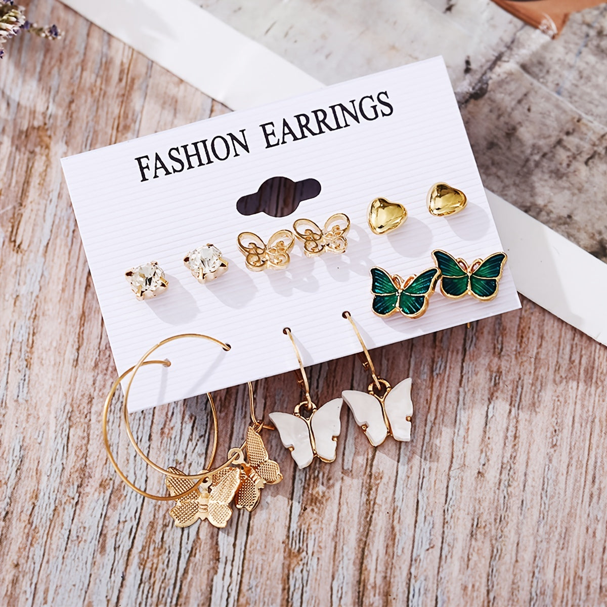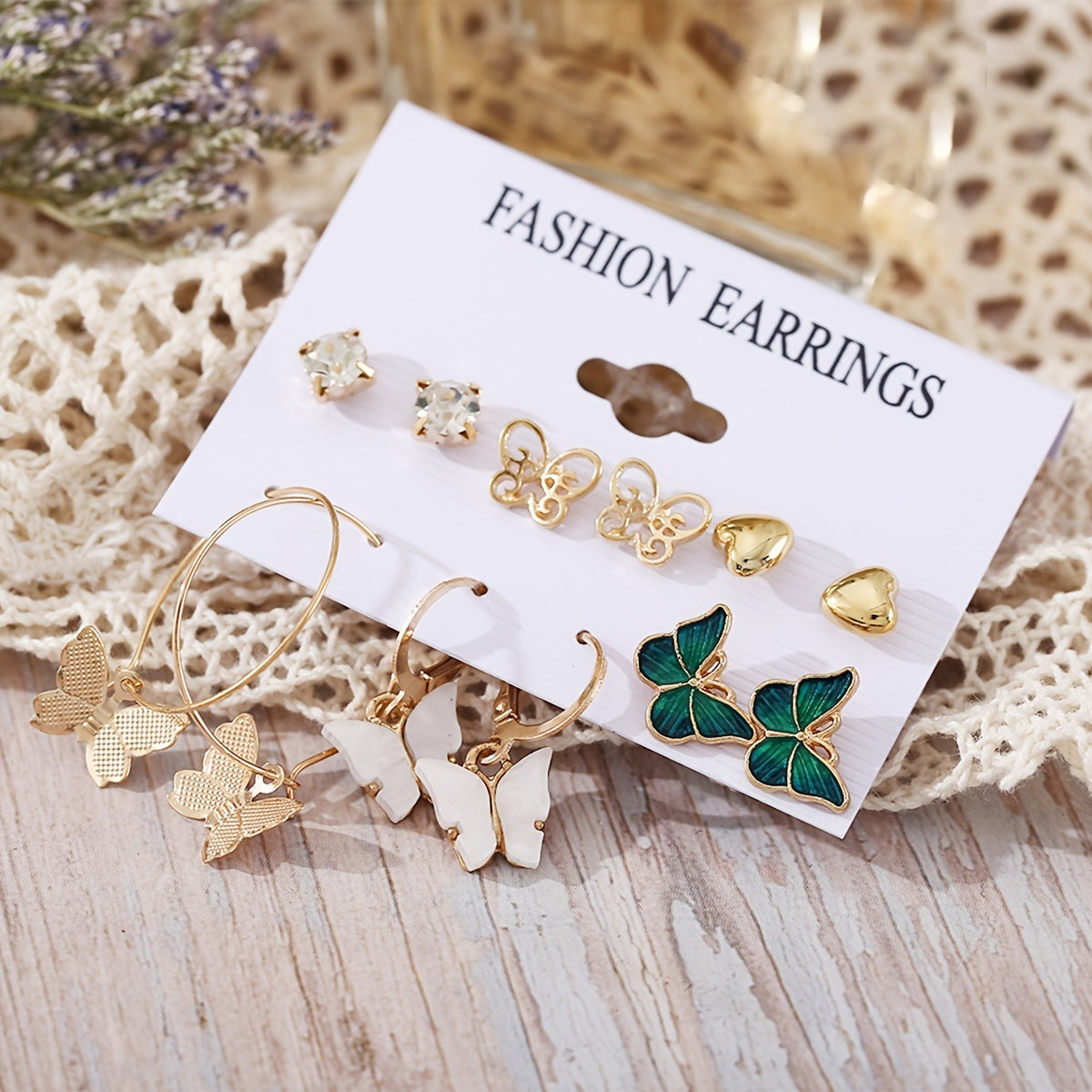 These adorable earrings feature a mix of butterfly and heart designs, perfect for women and girls. A great gift idea!