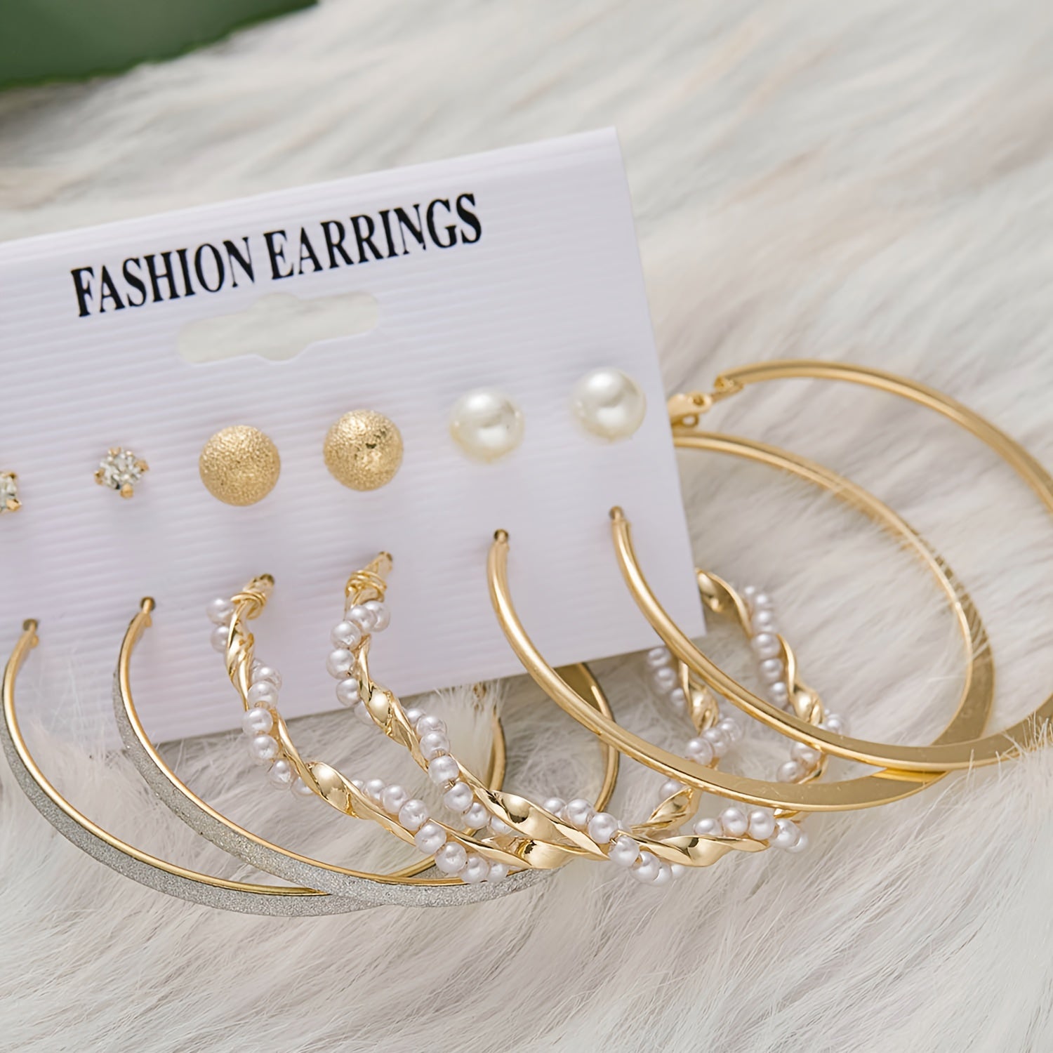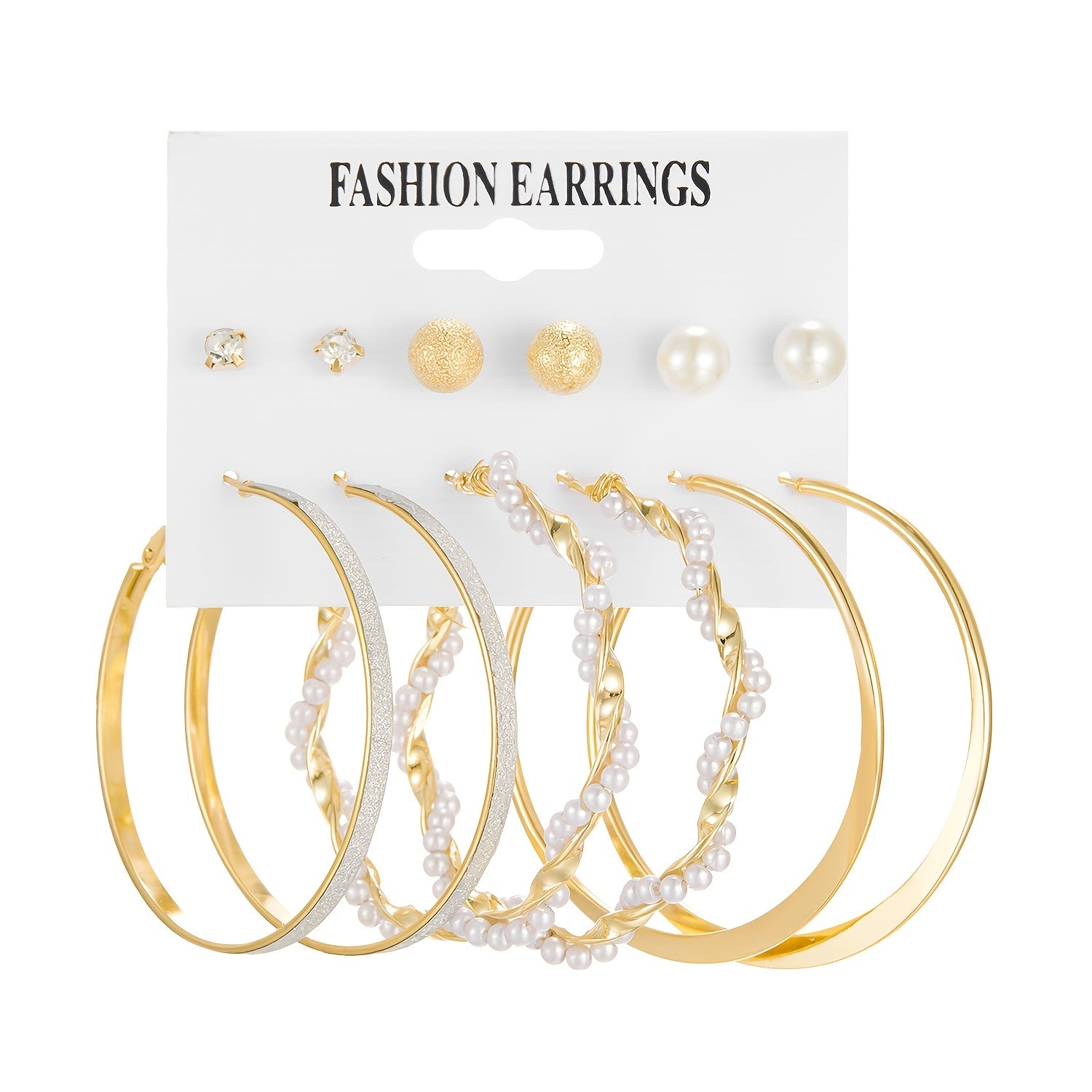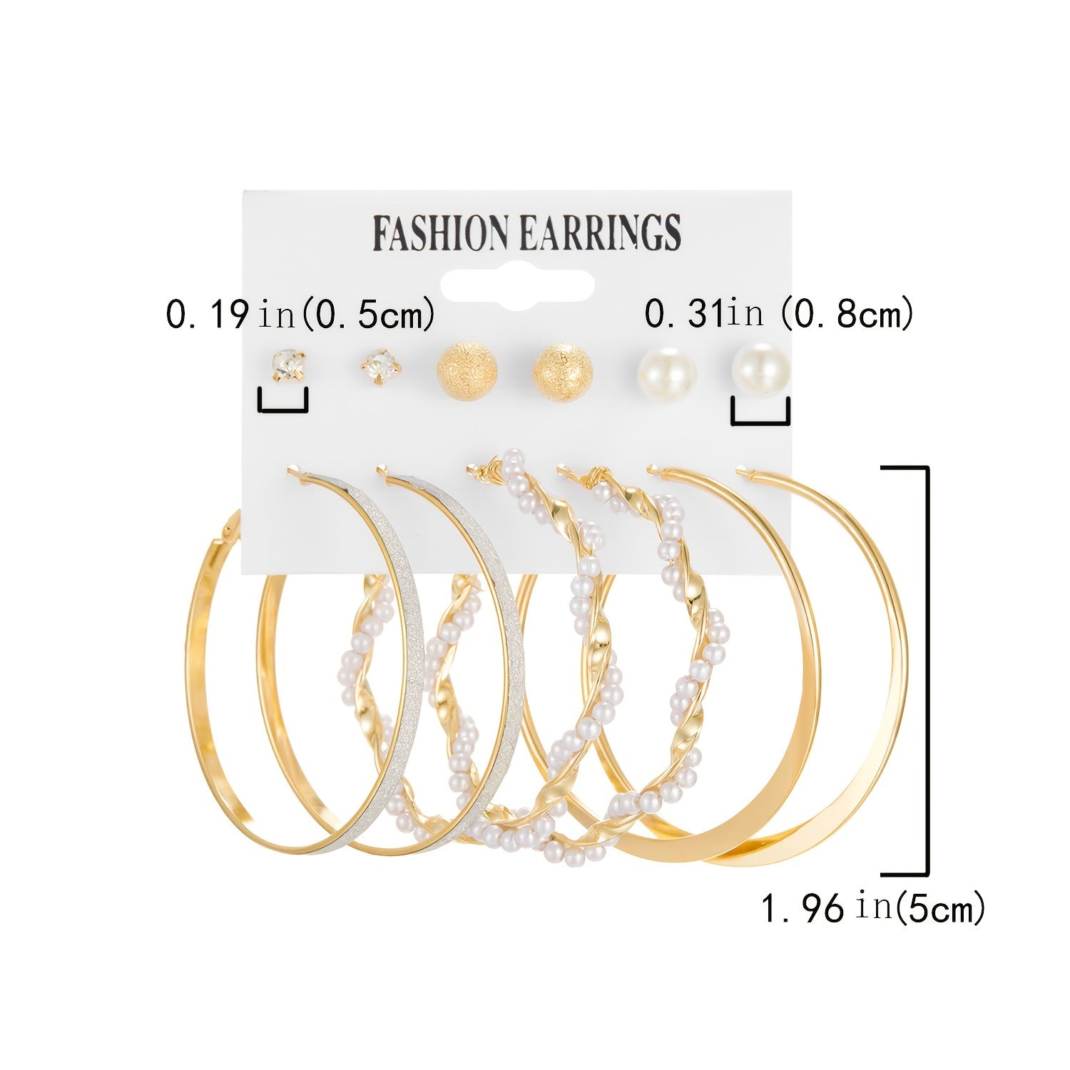 Add a bold and edgy touch to your outfit with this set of 6 pairs of exaggerated metal stud hoop earrings. Perfect for women and girls who want to make a statement.