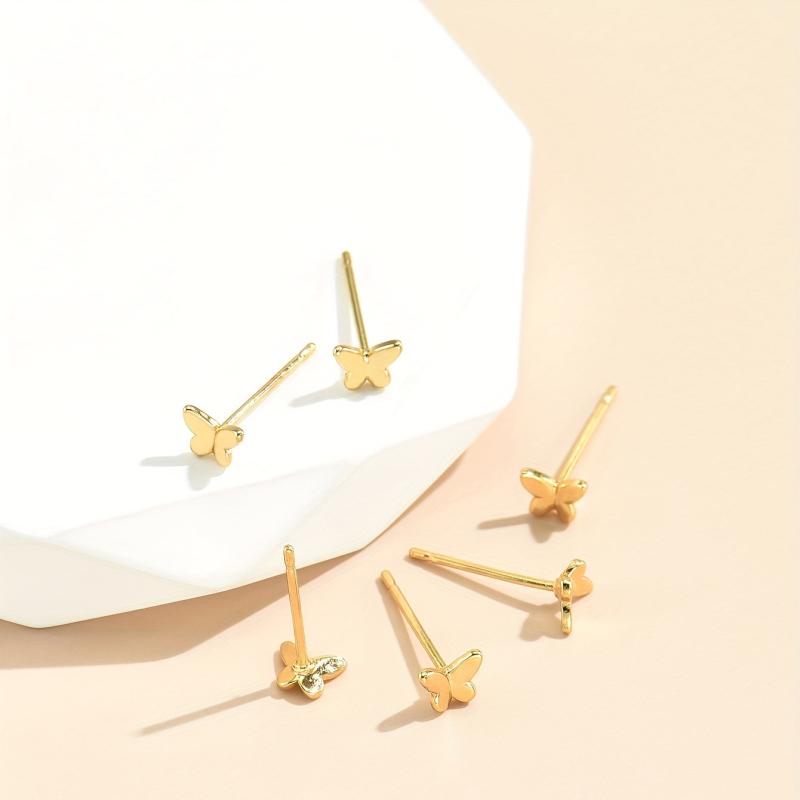 Add a touch of elegance to your outfit with these butterfly stud earrings. Made of copper with 14K gold plating, these earrings are perfect for everyday wear or special occasions.