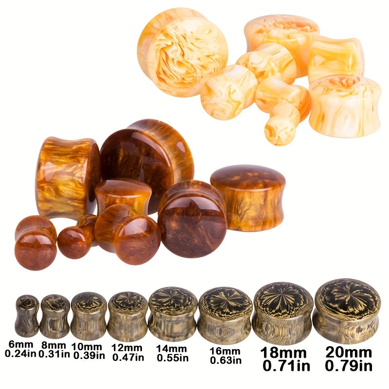 These resin ear plugs are perfect for women who love punk style. They can be used as ear flesh piercing, earlets expander, and ear hole stretcher. Made of high-quality material, these body jewelry pieces come in sizes ranging from 6mm to 20mm.