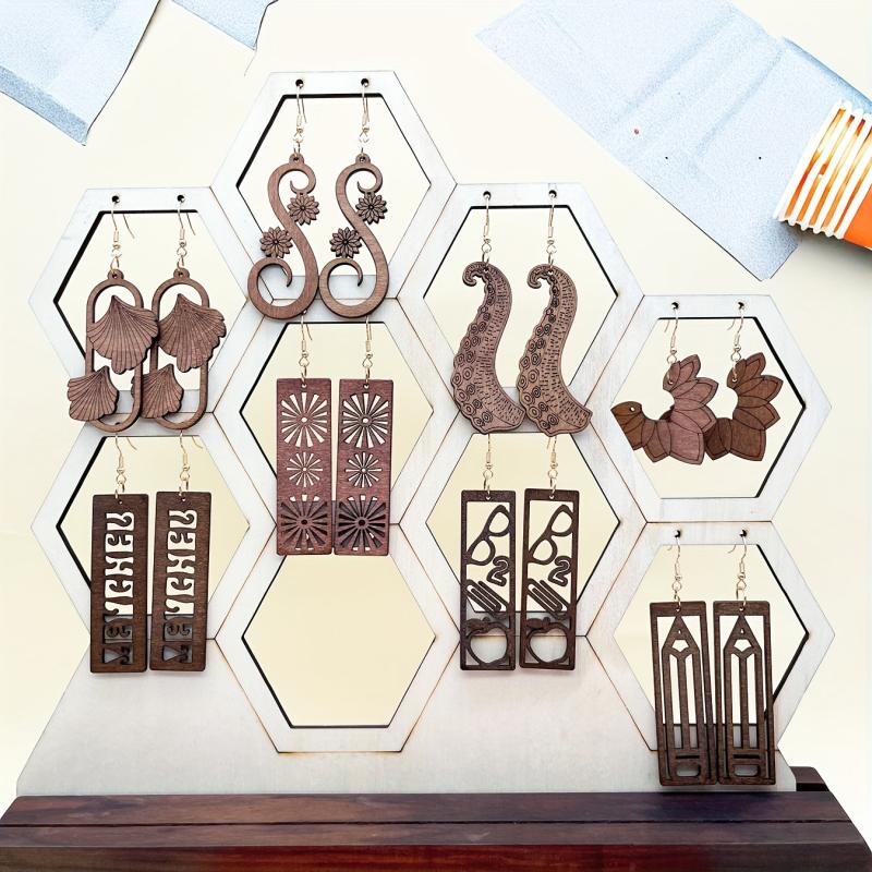 These wooden hollow earrings are a fashionable and personalized choice, featuring a unique charm in a retro artistic style. Perfect for daily wear or parties.