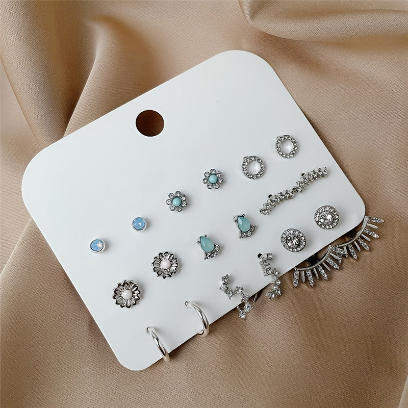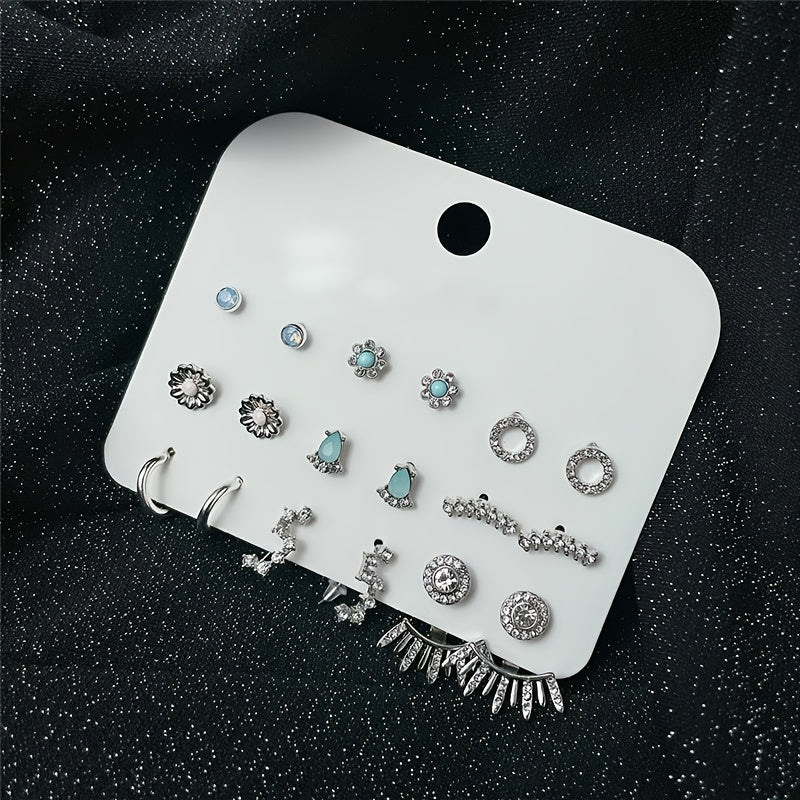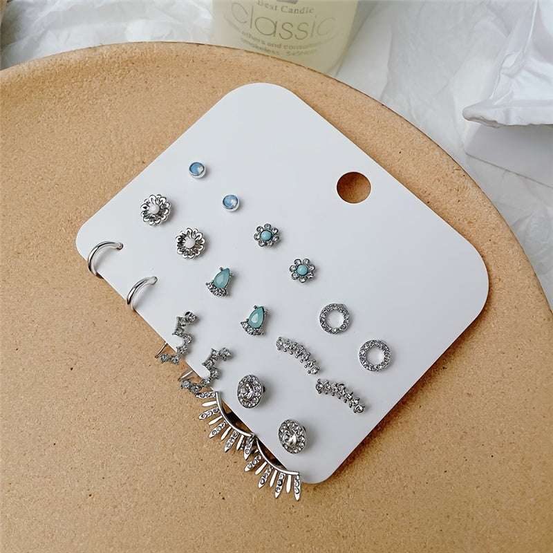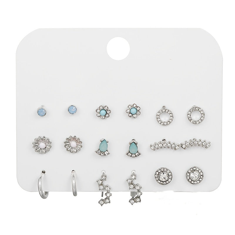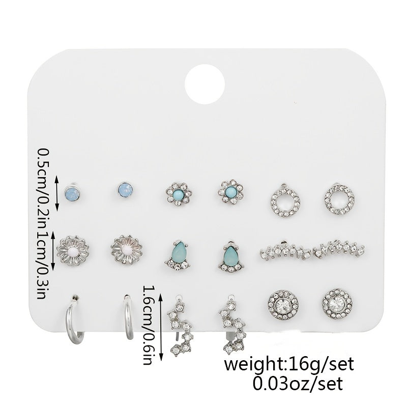 Elegant and versatile stud earrings set with rhinestone decor. Made of zinc alloy, perfect for daily casual wear.