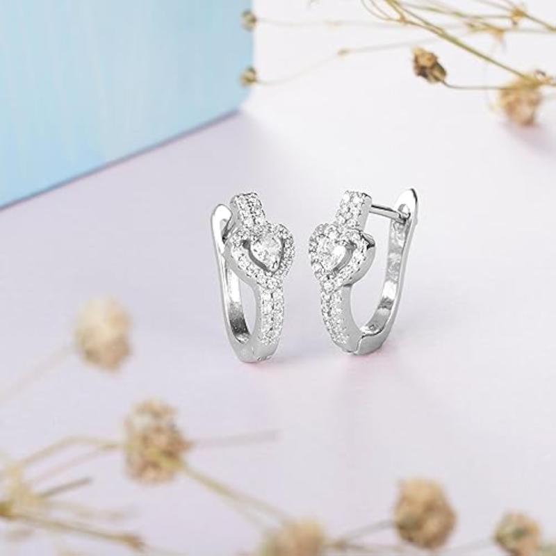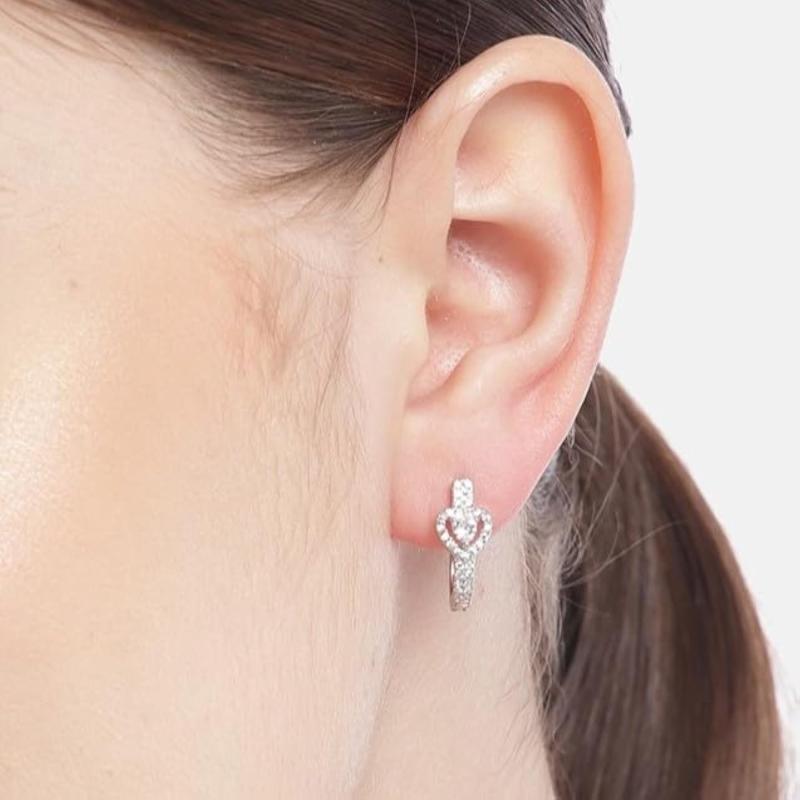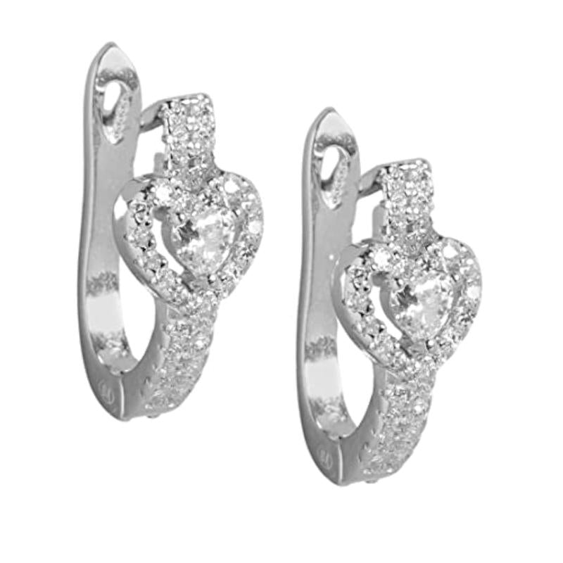 Elegant hoop earrings with heart-shaped CZ stones. Made of 925 sterling silver, hallmarked for authenticity.