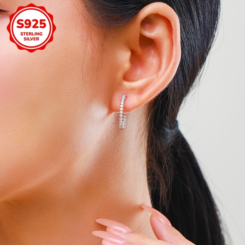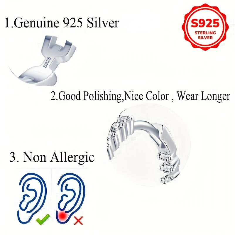 These hypoallergenic earrings are crafted from 925 pure silver and feature sparkling synthetic zirconia water drop decorations. The set includes a pair of round earrings.