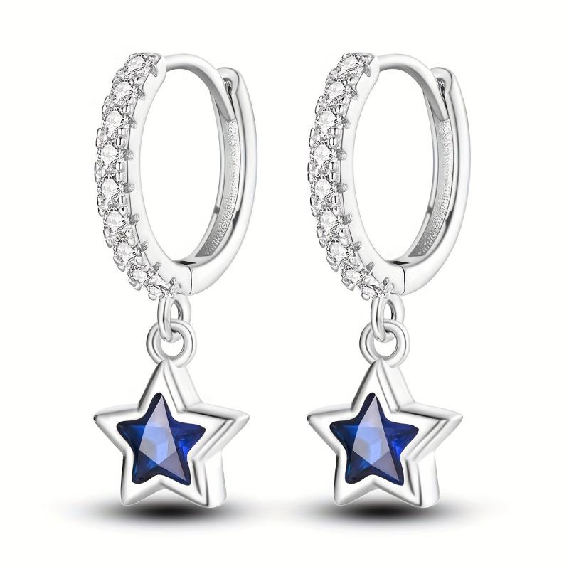 Get these sparkling dark star earrings, weighing 3 grams, made of 925 pure silvery metal. Perfect for women to wear for engagement parties, weddings, or as a gift.