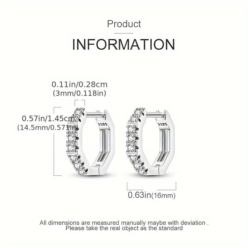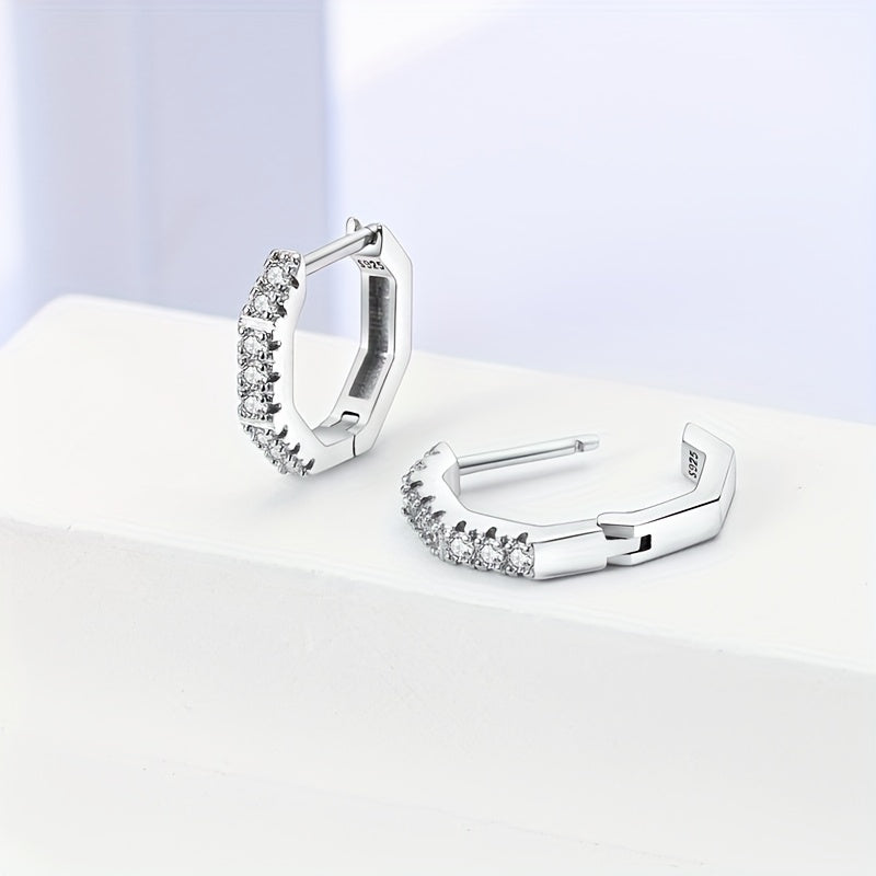 Elegant hexagonal zirconium earrings crafted with 925 pure silvery are perfect for weddings, parties, and birthdays.