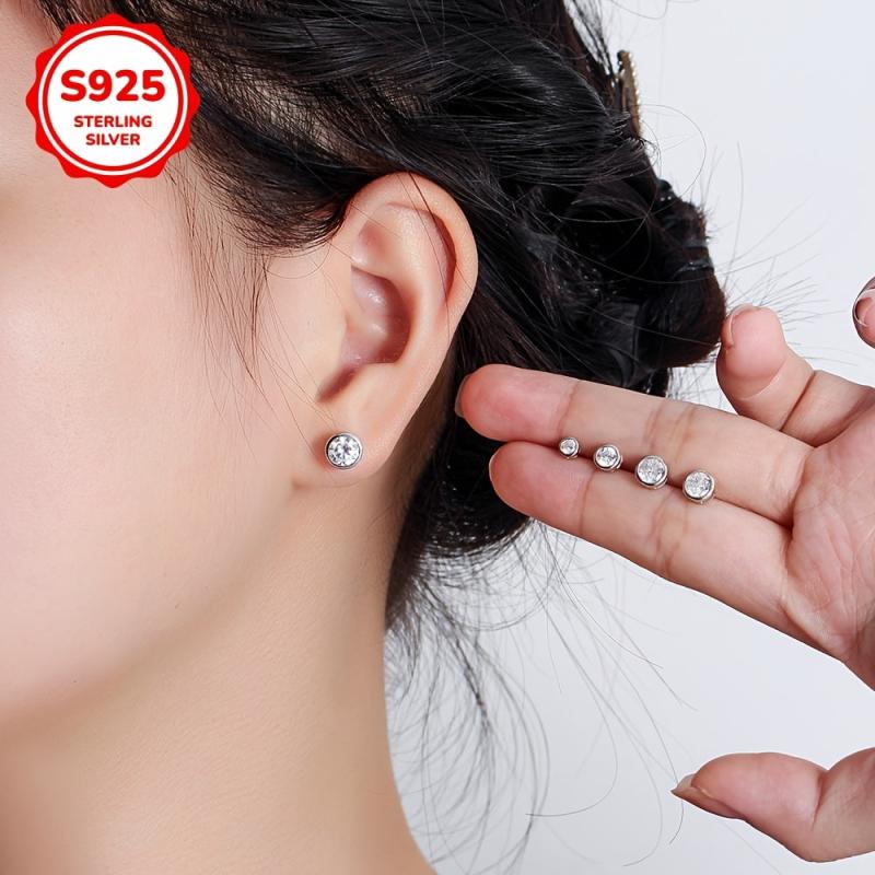 These delicate sterling silver stud earrings feature a 0.08 carat round zirconia stone. Perfect for women and teenagers, these minimalist earrings make a great jewelry gift.