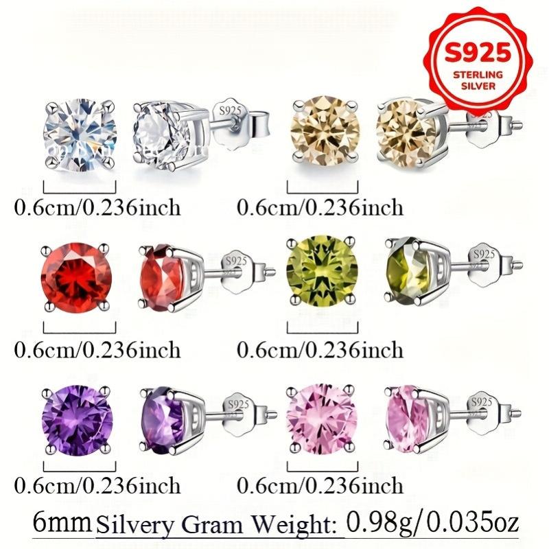 Hypoallergenic 6mm round earrings with 6 colors to choose from. Perfect for daily wear.