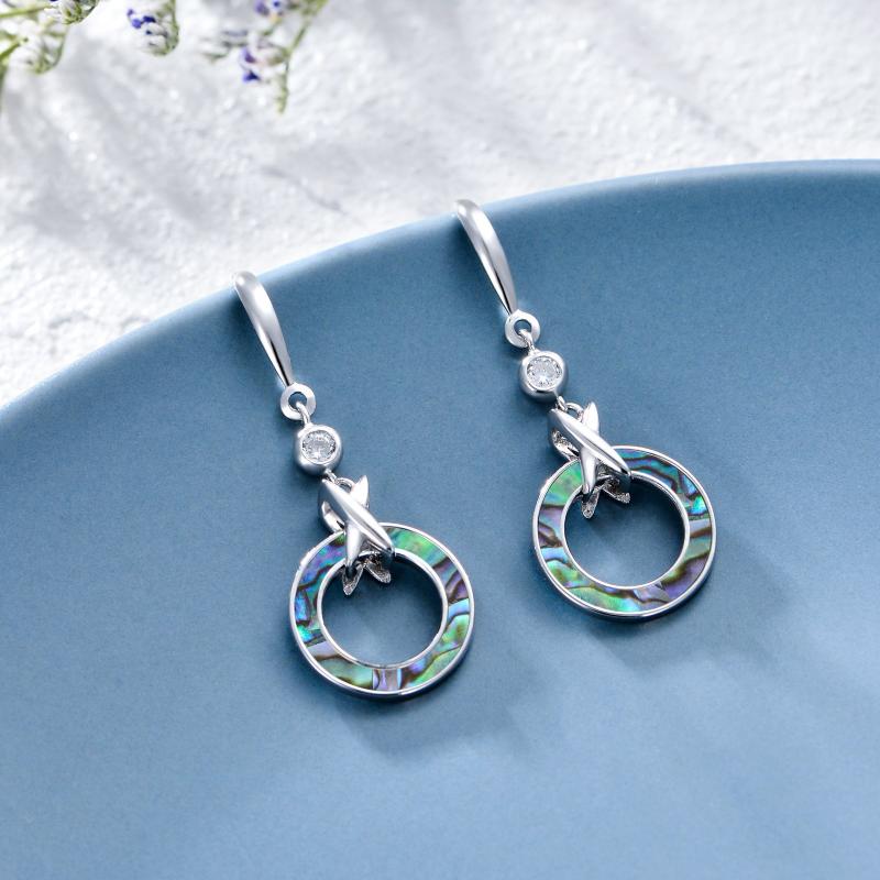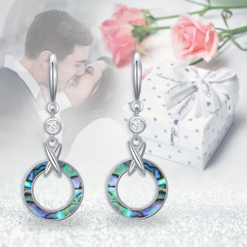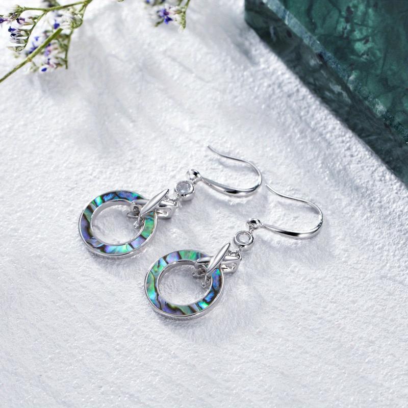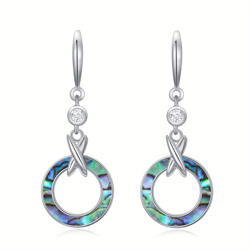Add a touch of elegance with these geometric dangly earrings featuring synthetic abalone. Perfect for women and girls.