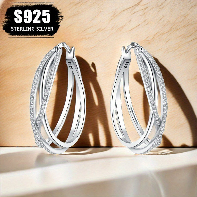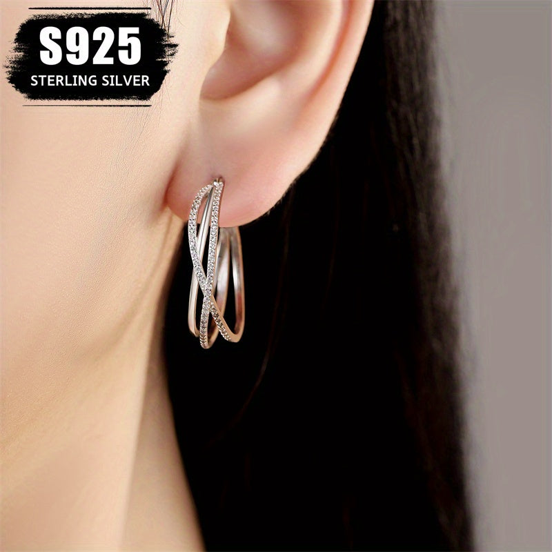 Elegant and hypoallergenic 925 silver earrings featuring a curve cross braided design. Perfect gift for women on any occasion.