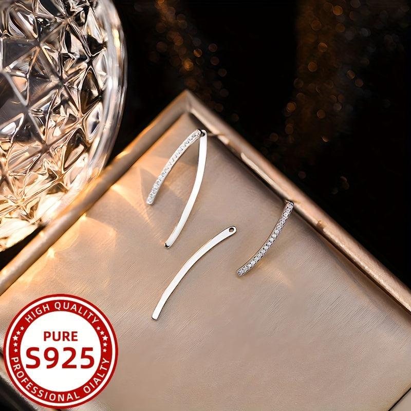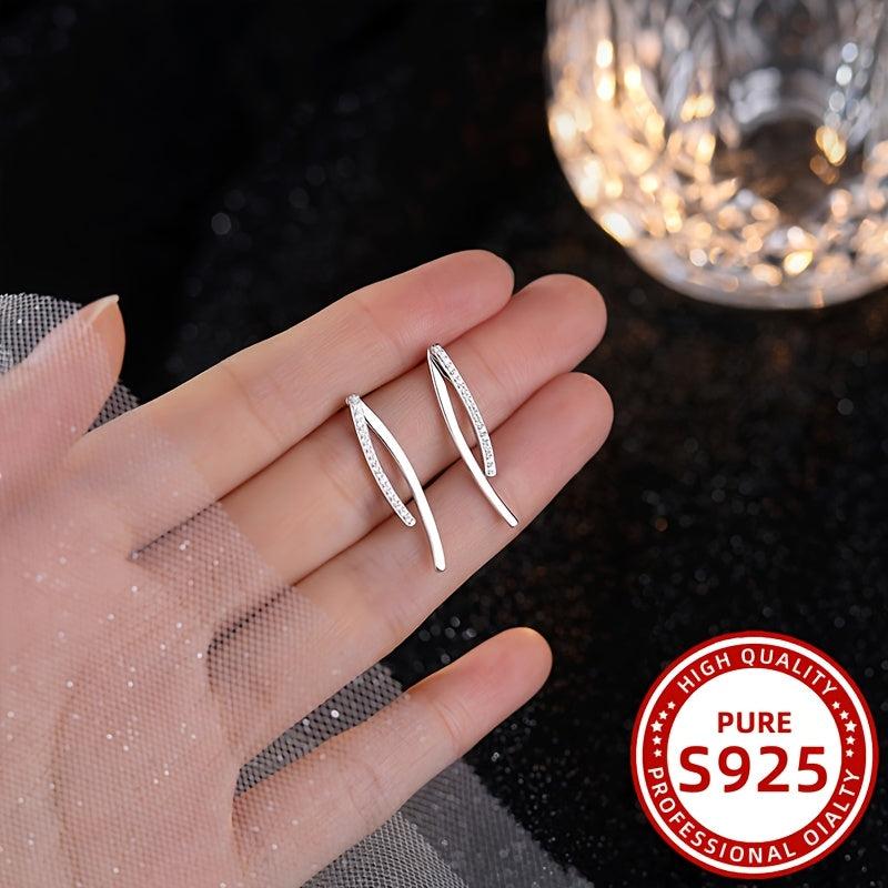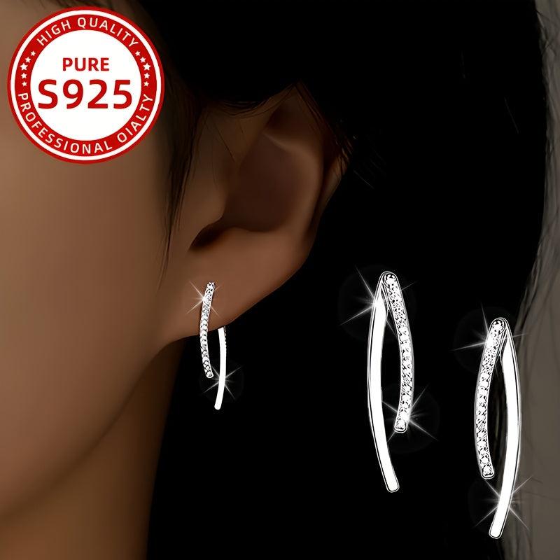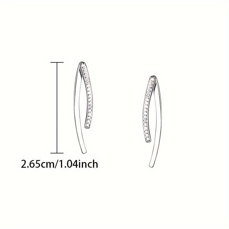 Add a touch of elegance to your outfit with these 925 silver earrings featuring a curve line design and sparkling synthetic zirconia. Perfect for daily wear or vacation.