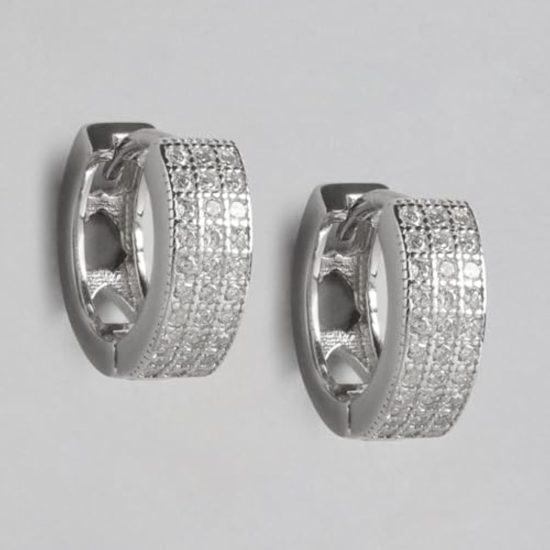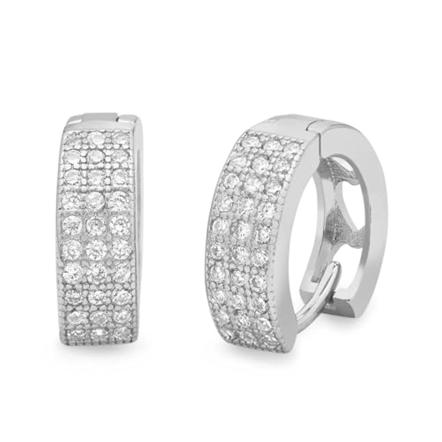 Elegant and stylish hoop earrings crafted from 925 sterling silver with sparkling cubic zirconia stones. Features a beautiful Bali design and comes with a hallmarked guarantee.