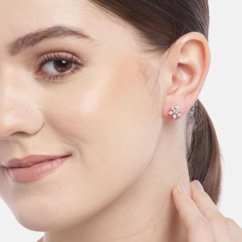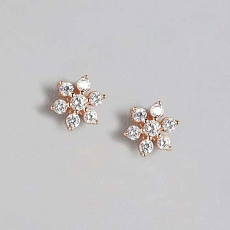 Elegant and sparkly stud earrings featuring a floral star design with cubic zirconia stones. Crafted from genuine 925 sterling silver with a high-quality finish. Hallmarked for authenticity.