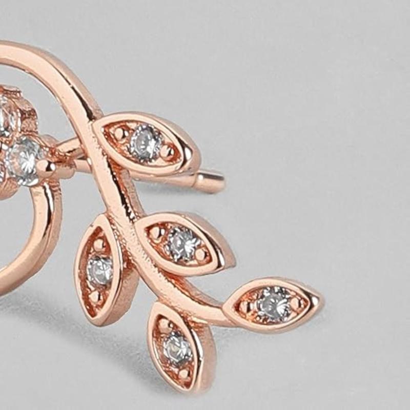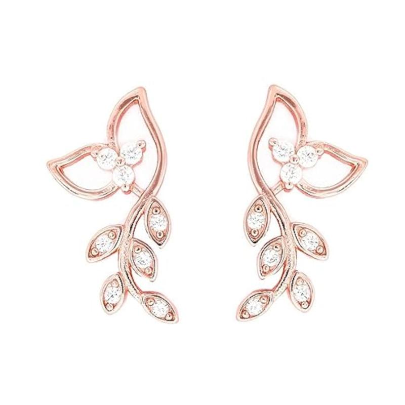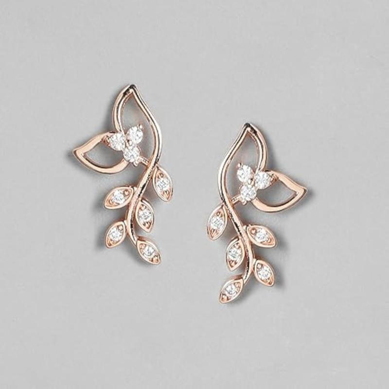 Elegant and stylish leaf-shaped earrings crafted from 925 sterling silver with sparkling cubic zirconia stones. Features a hallmark for authenticity.