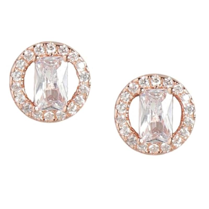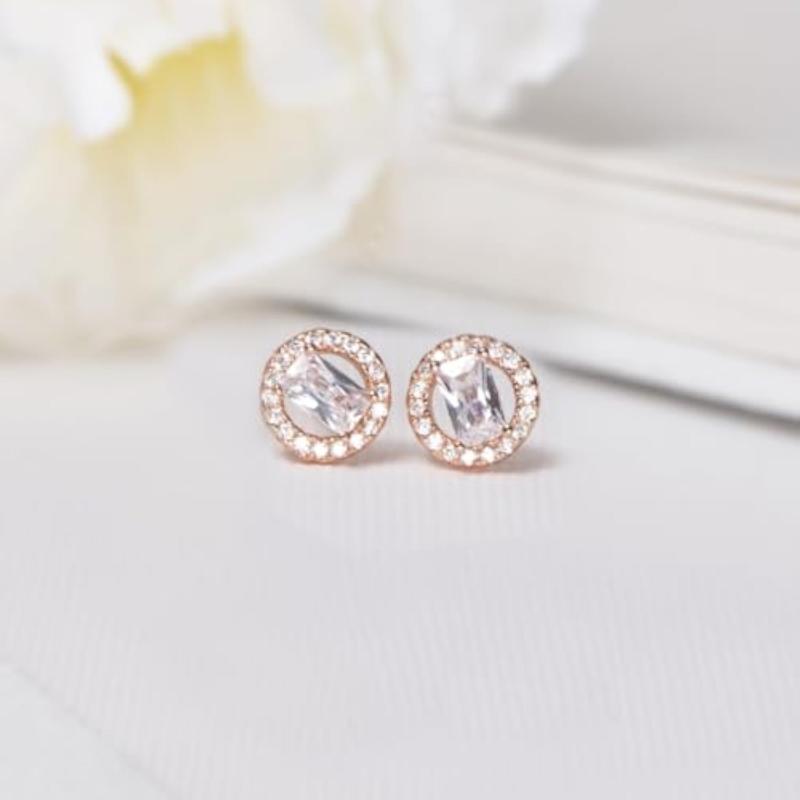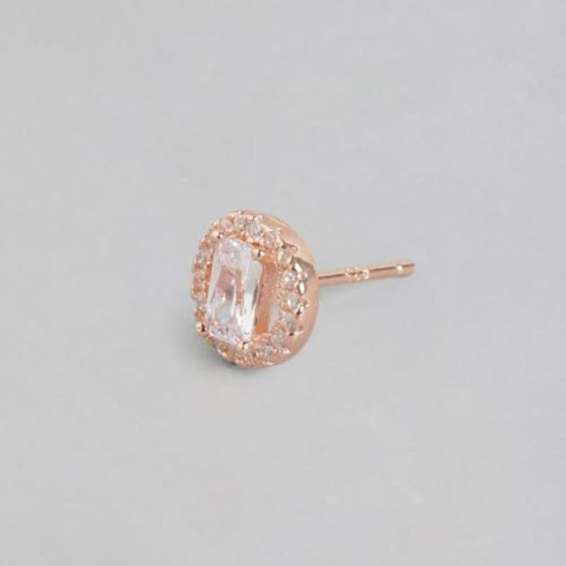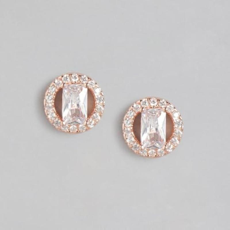 These stunning stud earrings are made of 925 sterling silver and feature encircled CZ stones. The earrings are rose plated and come with a 925 hallmark for authenticity.