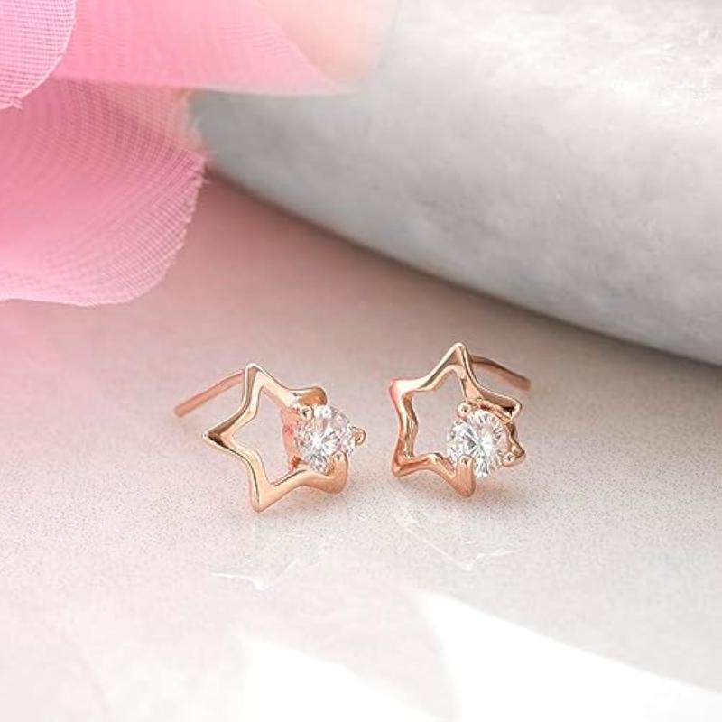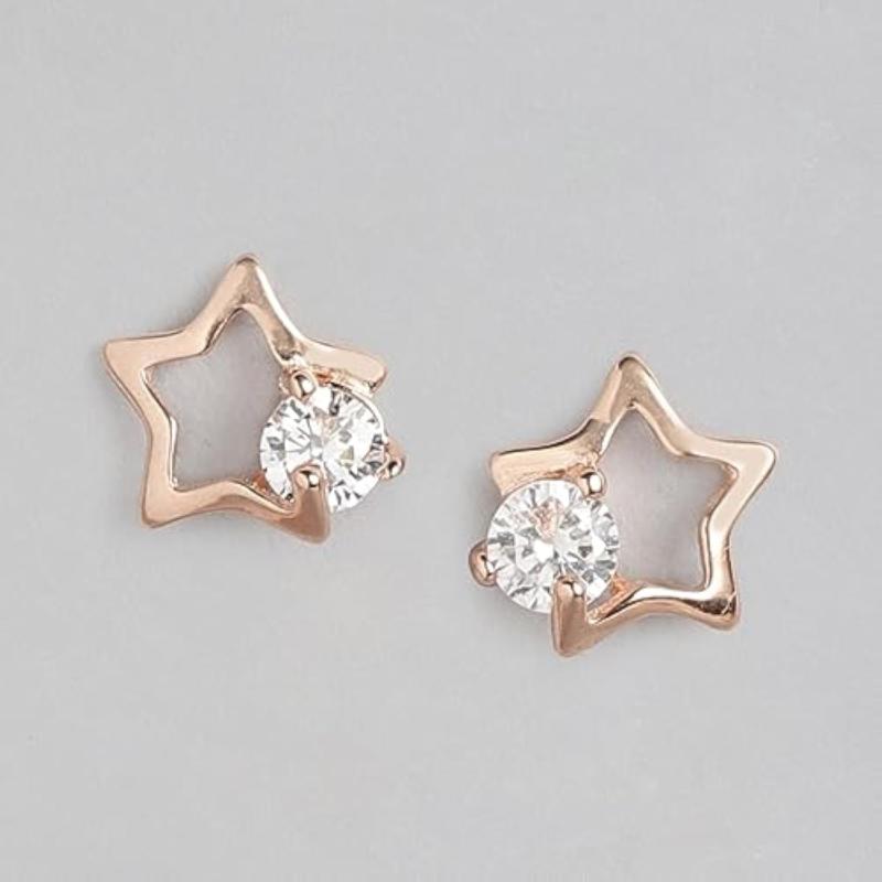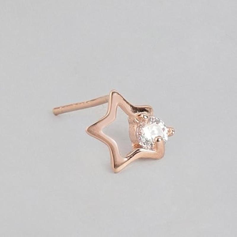 Shine bright with these stunning star stud earrings made of 925 sterling silver. Each earring is studded with sparkling cubic zirconia stones, adding a touch of glamour to any outfit. The earrings come with a hallmark for authenticity.