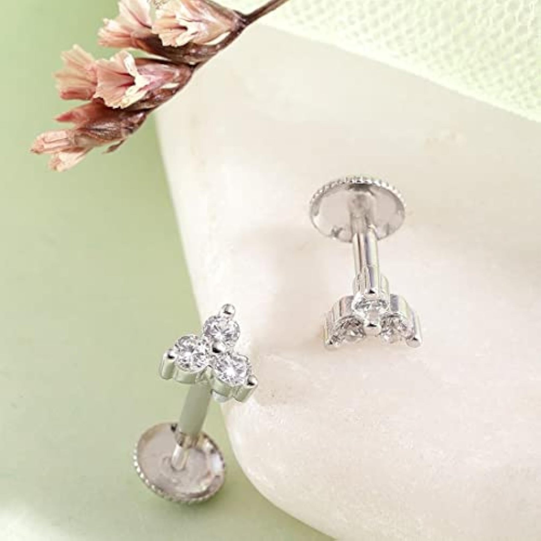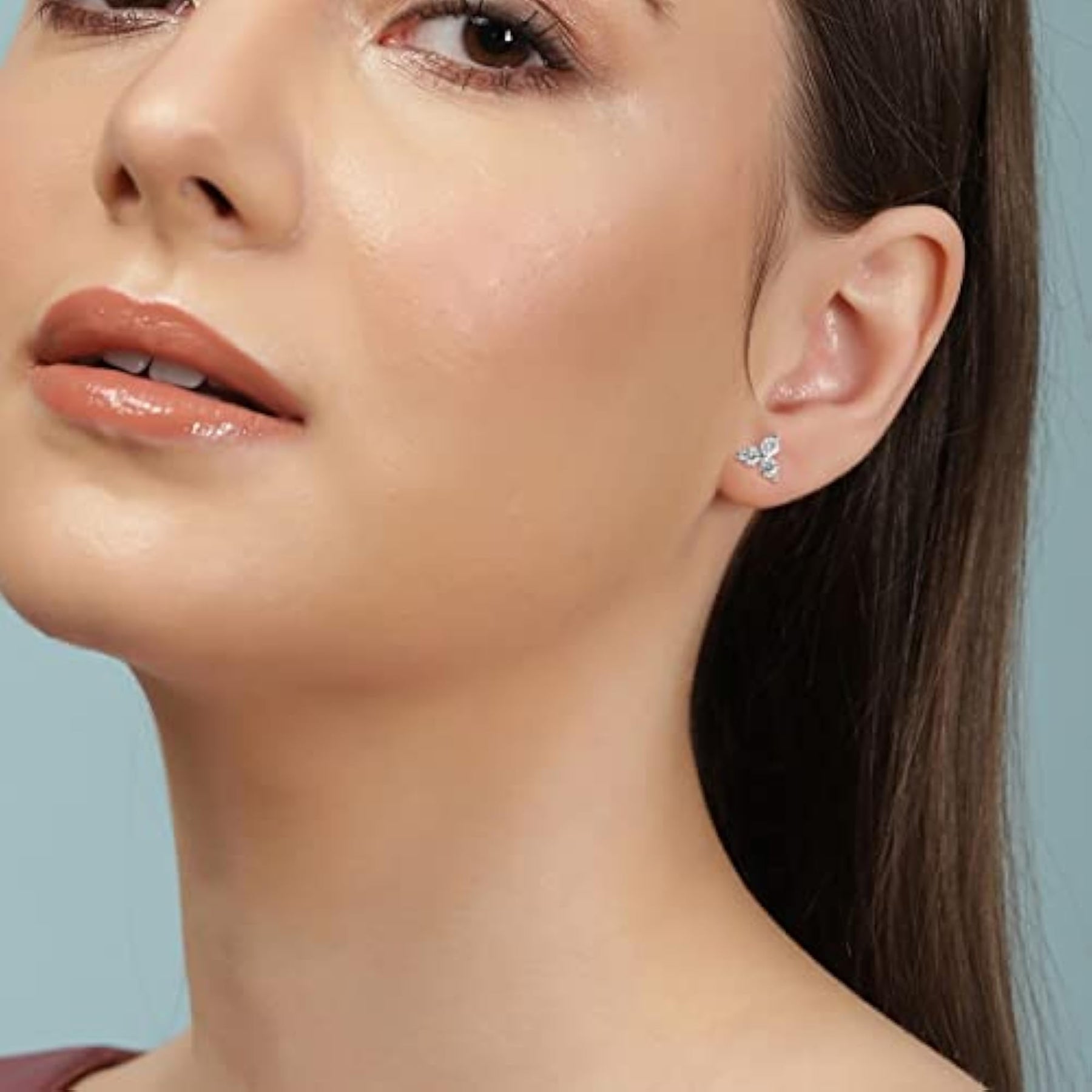 Sparkling cubic zirconia triangular earrings made from 925 sterling silver with a rhodium plating. Features a comfortable and secure fit.