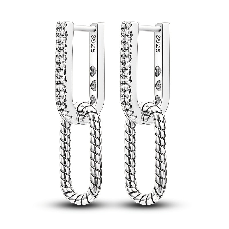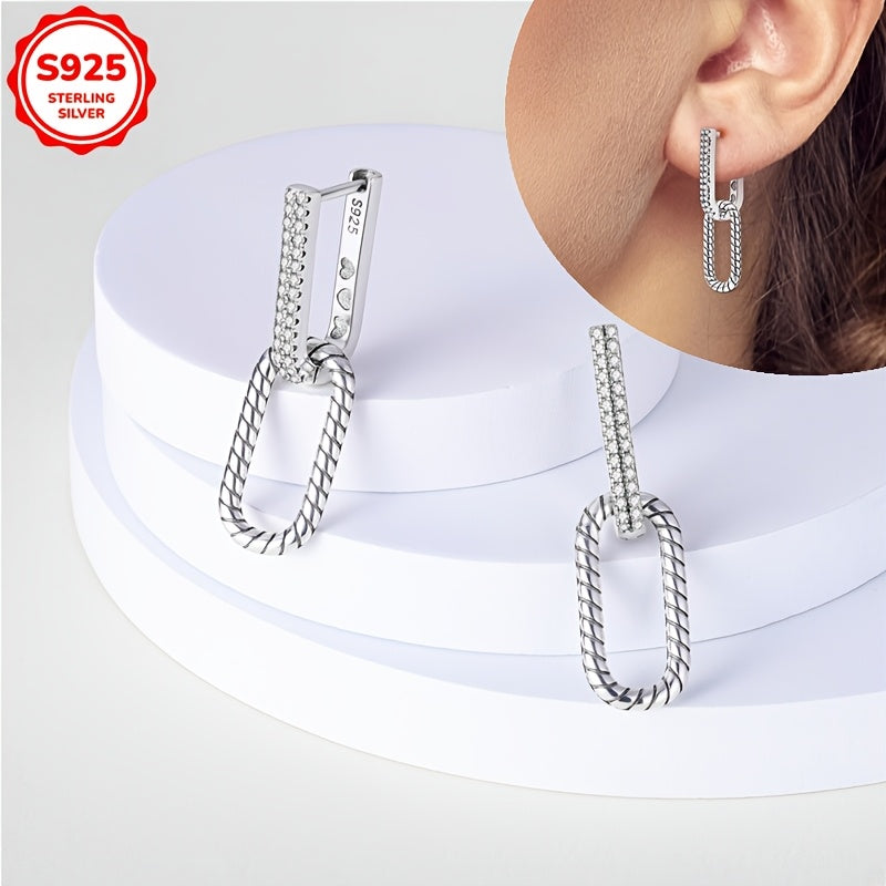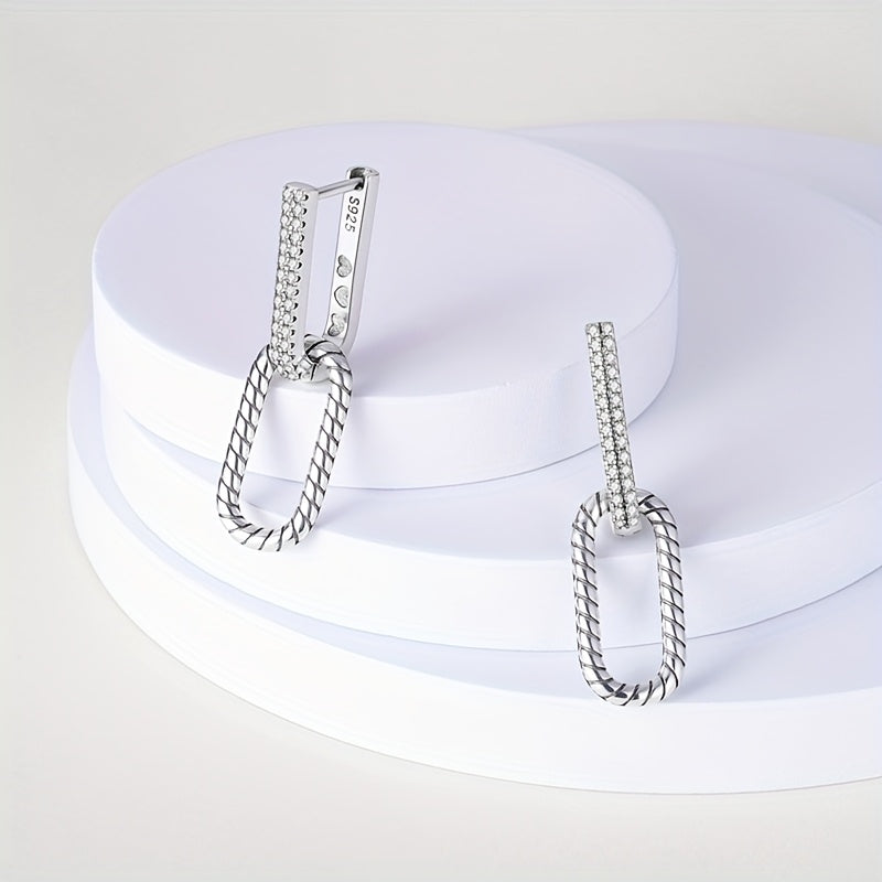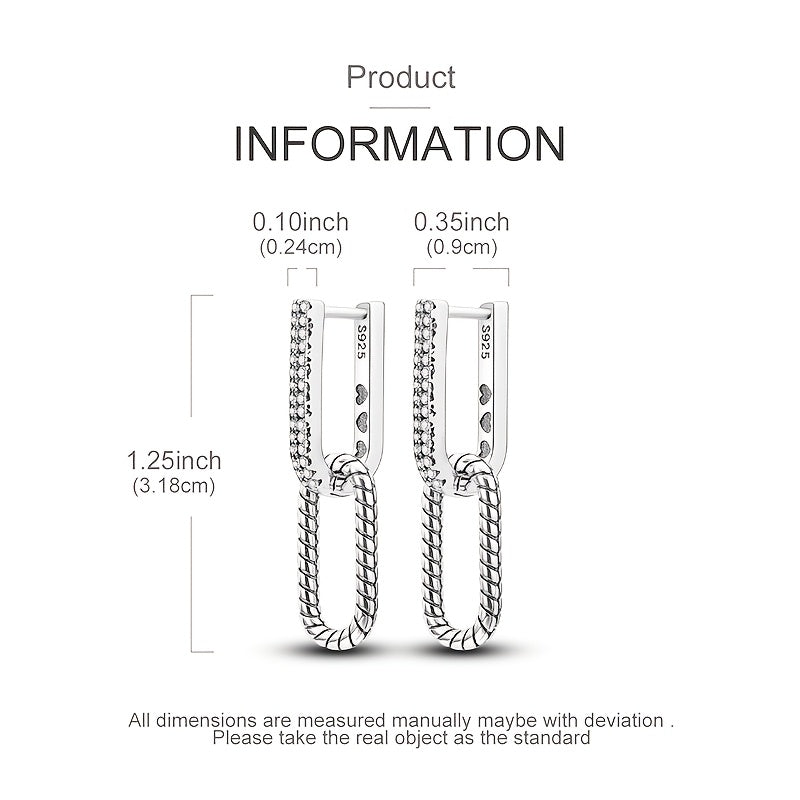 These elegant earrings are made of 925 silver, featuring a U-shaped double ring design with a stylish snake pattern. Perfect for engagement parties, weddings, or casual wear.