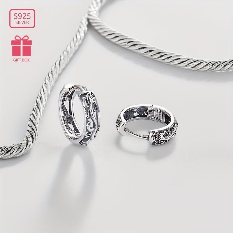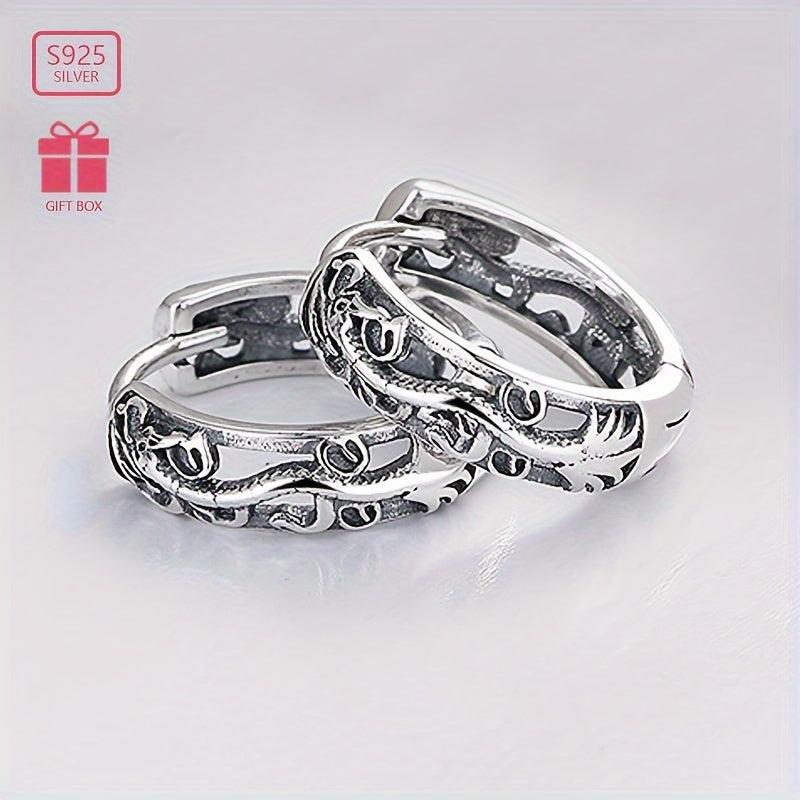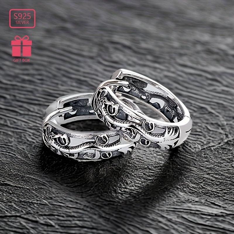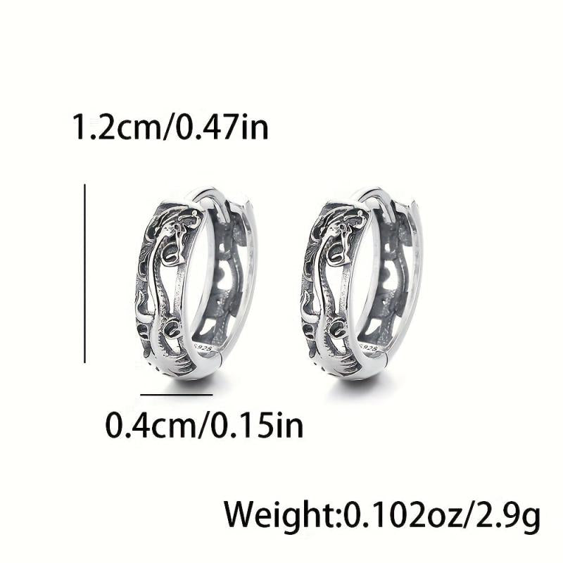 Exquisite 925 Silver Dragon Earrings with a vintage ethnic dragon pattern totem design. Suitable for daily wear and special occasions.