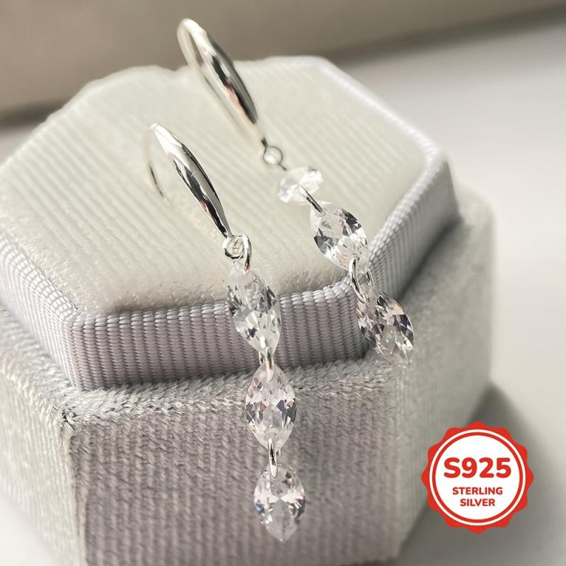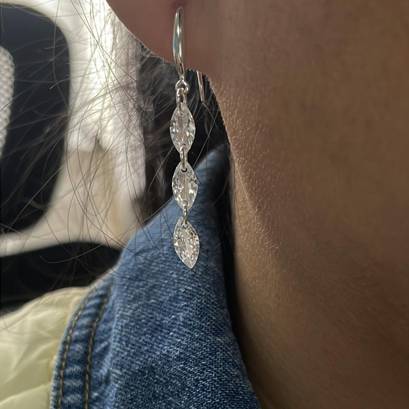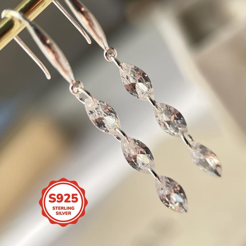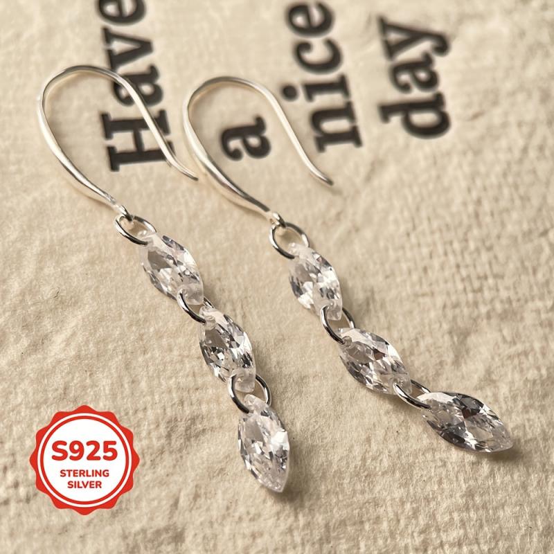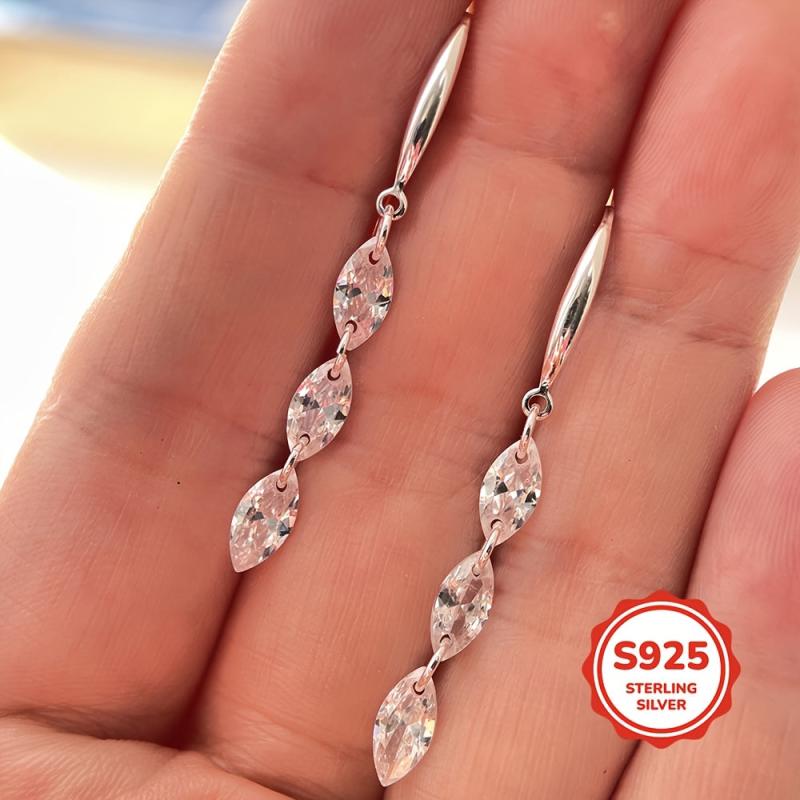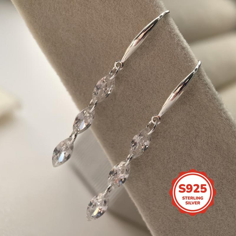 Elegant 925 sterling silver ear hooks adorned with three marquise cut synthetic zirconia tassels that dazzle with brilliance.