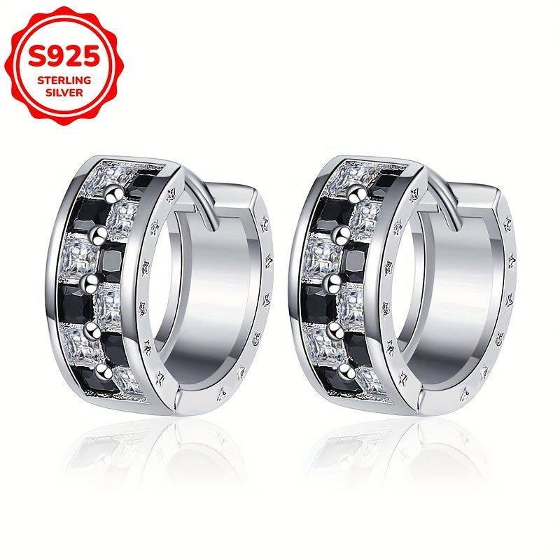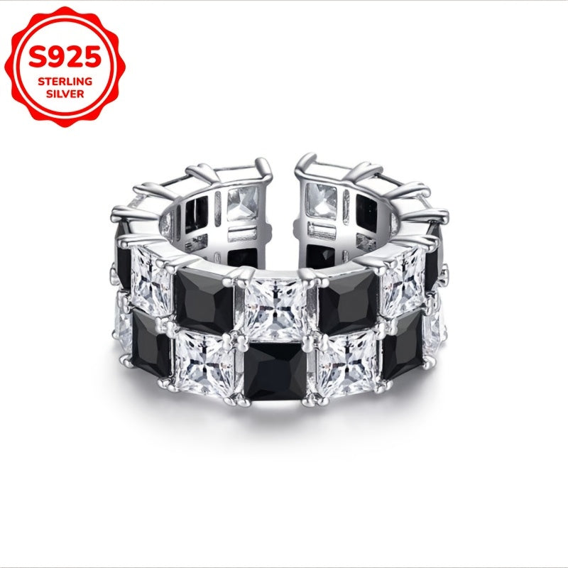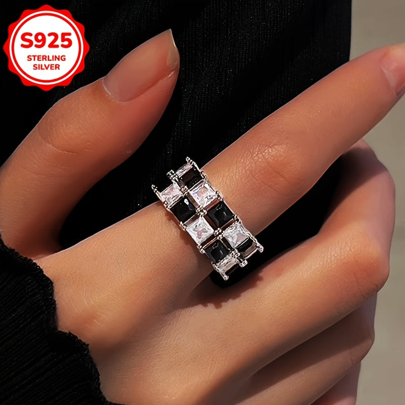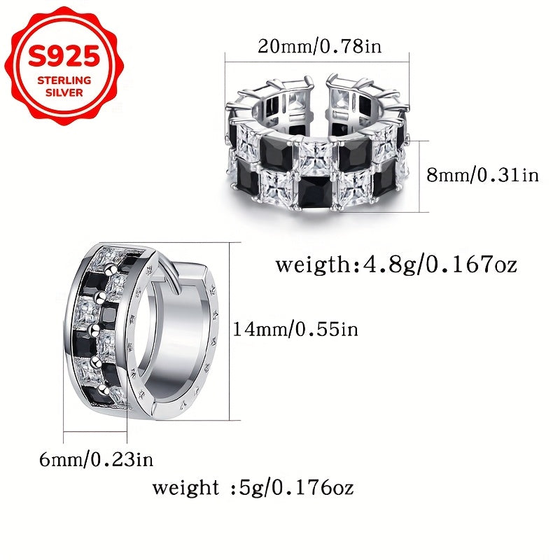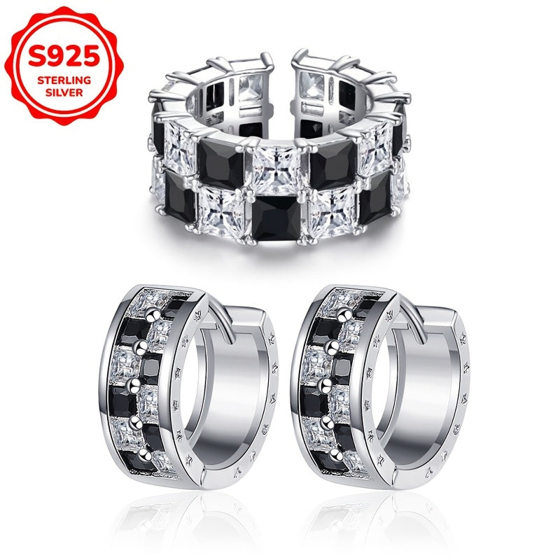 Stylish jewelry set for women includes earrings and ring. Features grid settings of synthetic zirconia on 925 silver, weighing 5 grams. Perfect for everyday wear.