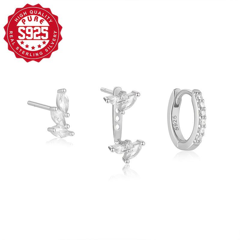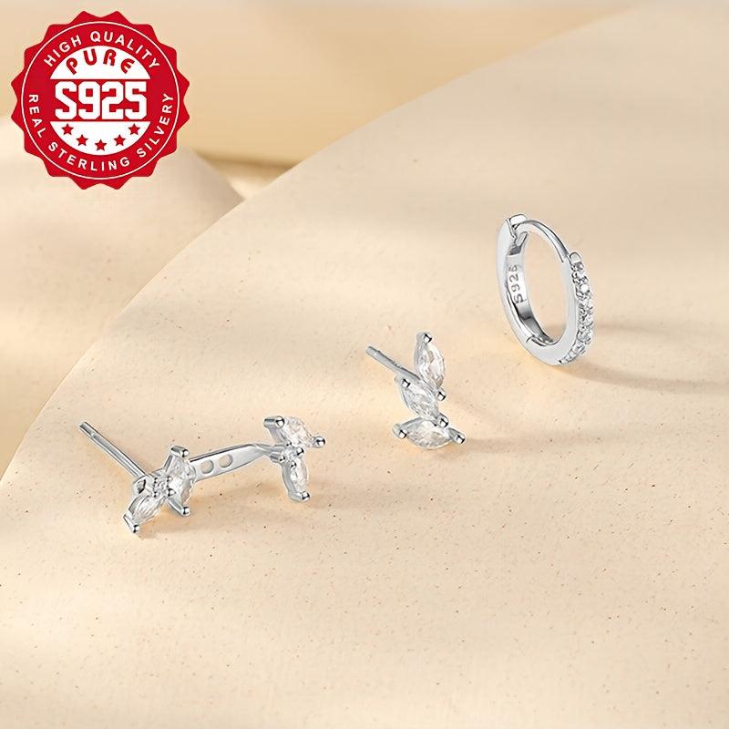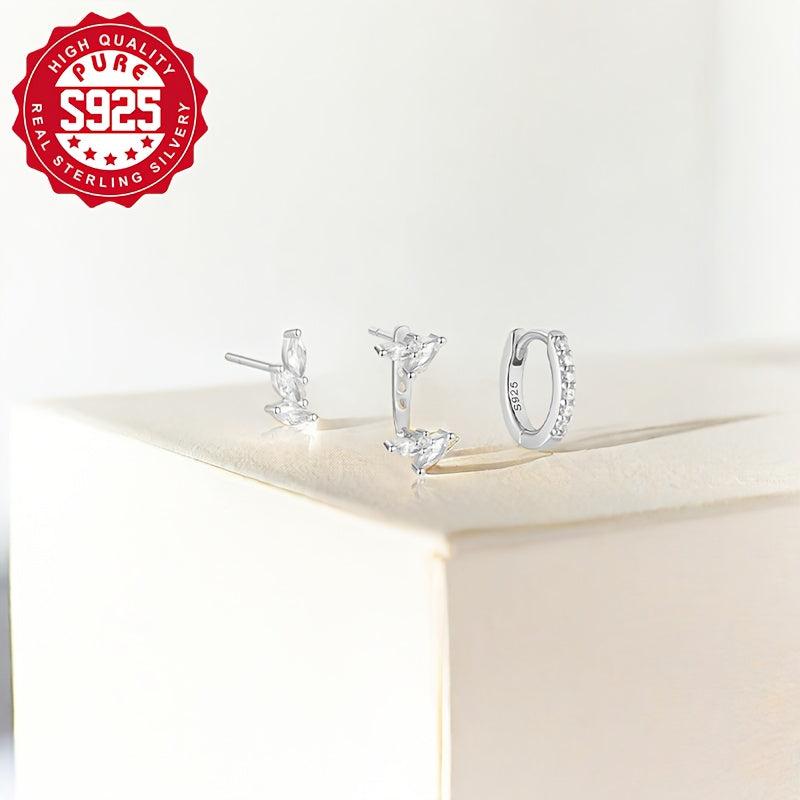 Beautiful set of 3 lightweight silver earrings with synthetic zirconia, perfect for Thanksgiving gift or music festivals. Hypoallergenic and stylish accessory.