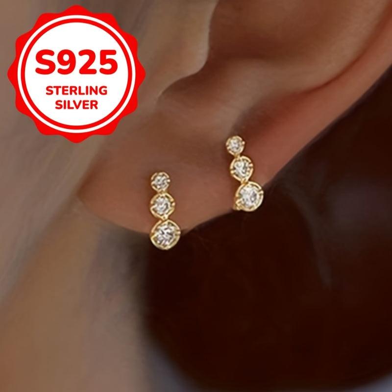 These elegant 925 silver earrings feature three round geometric shapes that add a modern touch to any outfit. Perfect for women's engagement or as a special gift.