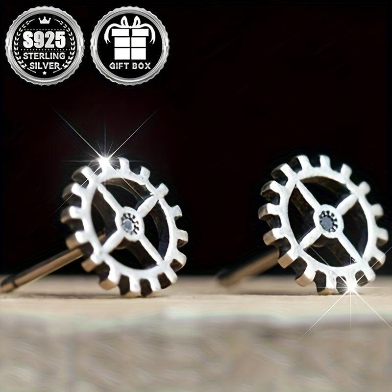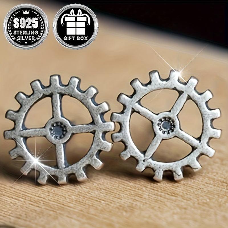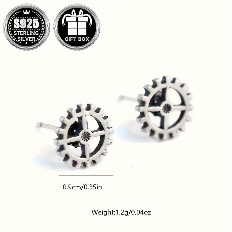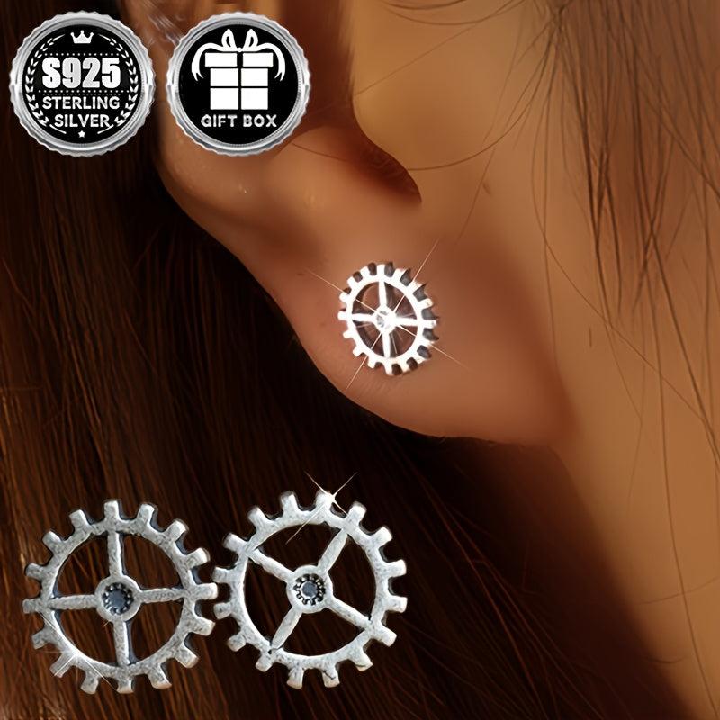 Add a touch of vintage charm to your Halloween party outfit with these sterling silver earrings. Featuring a golden steam gear design, these earrings are perfect for a gothic or steampunk look.