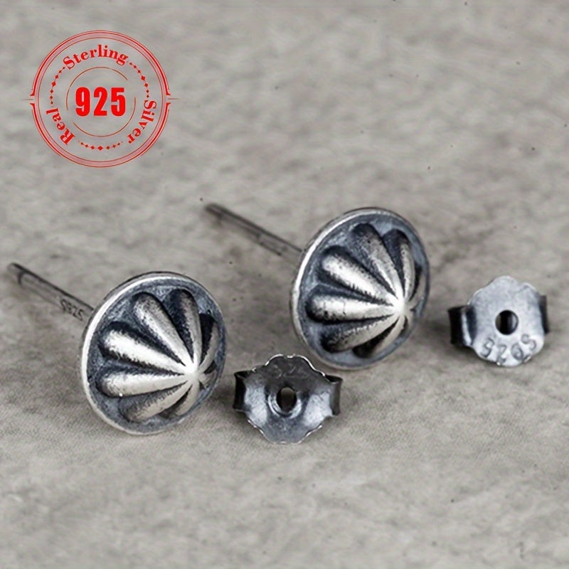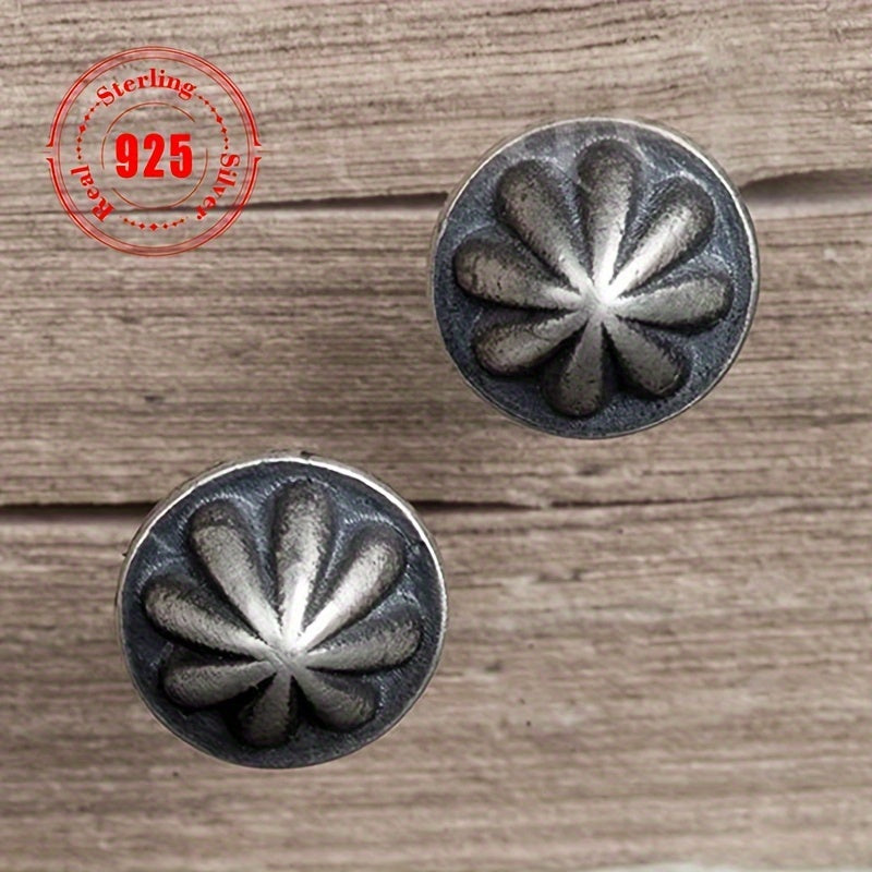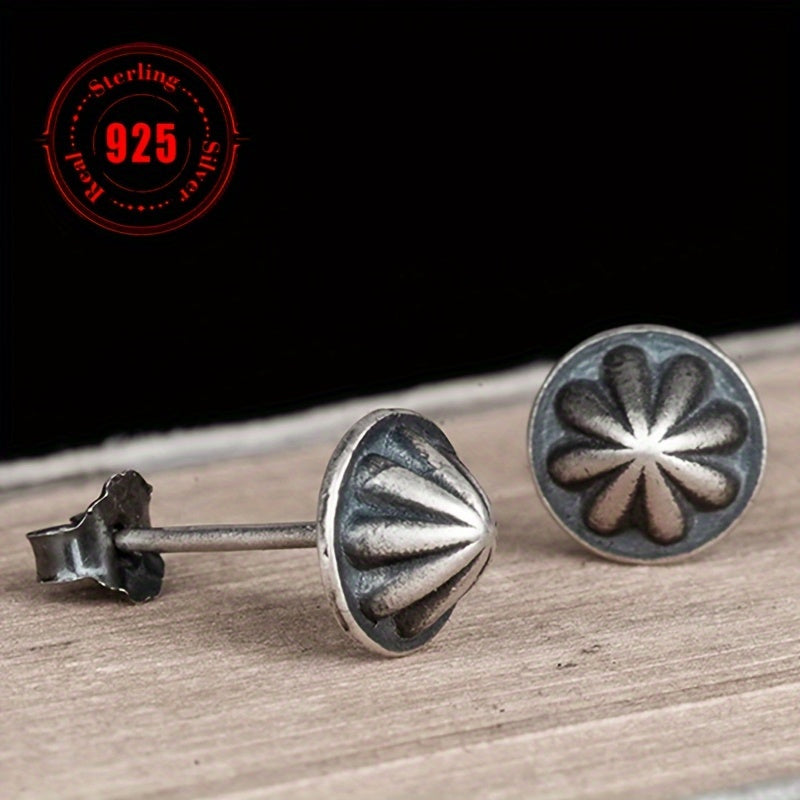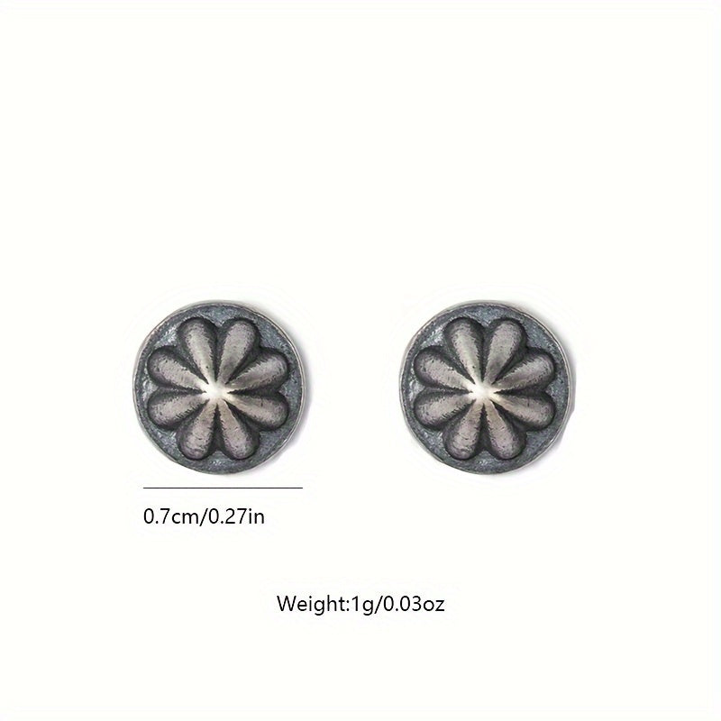 These silver stud earrings have a unique petal floral design with a cloth buckle, perfect for a Halloween party or themed event. They weigh about 1g and have a retro gothic punk style.