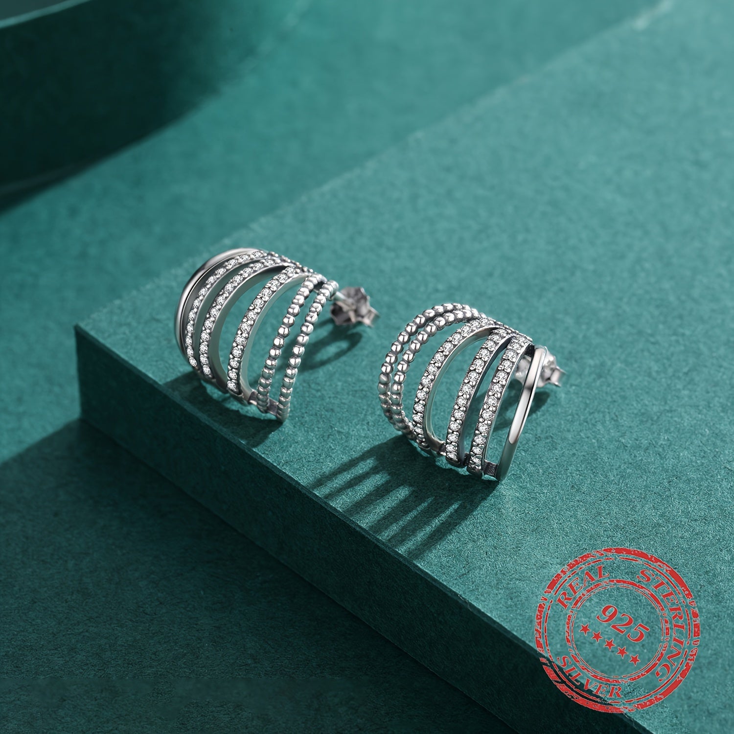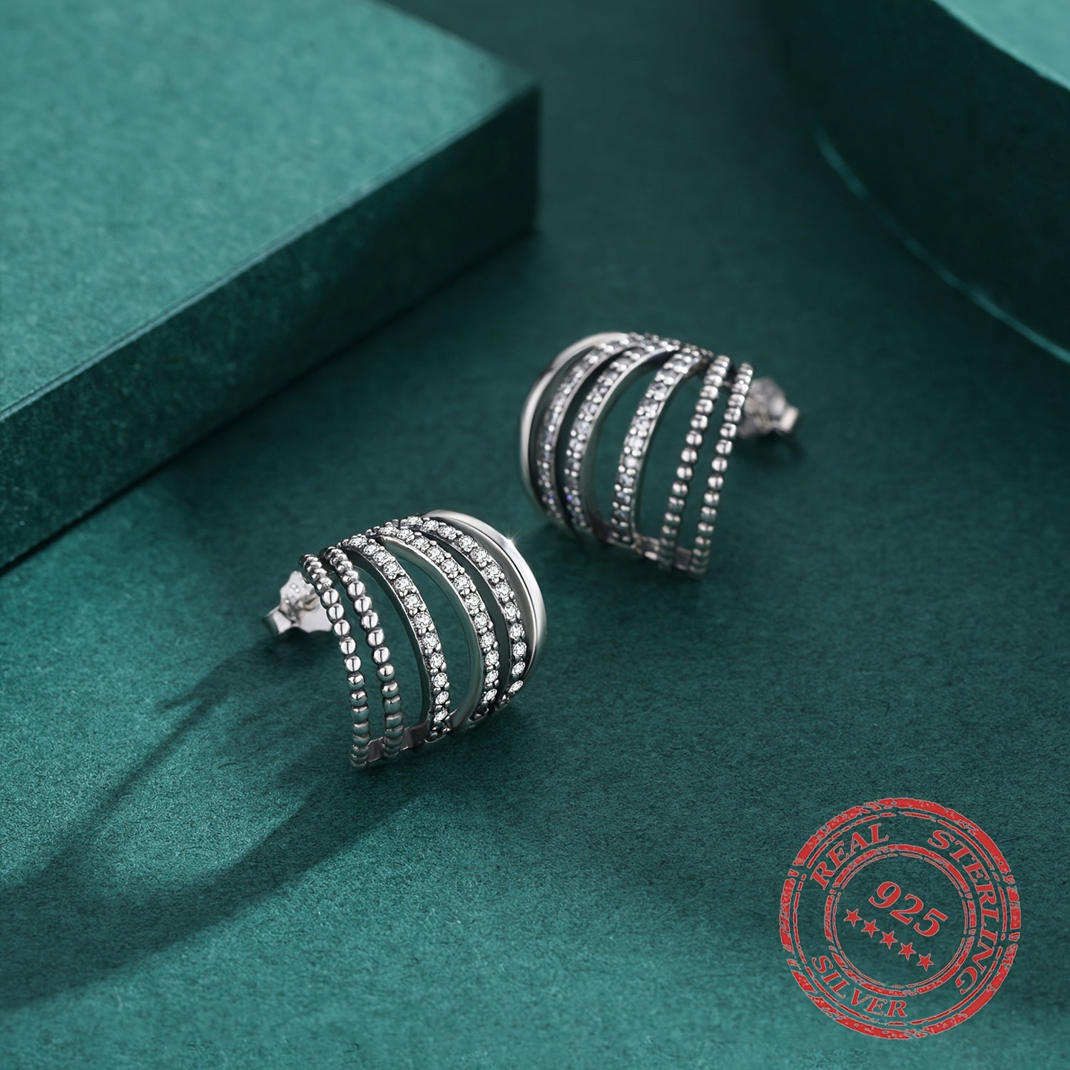 Add a touch of vintage elegance to your look with these delicate geometric stud earrings. Crafted from 925 sterling silver and featuring sparkling zirconia stones, these earrings are a perfect gift for any occasion.