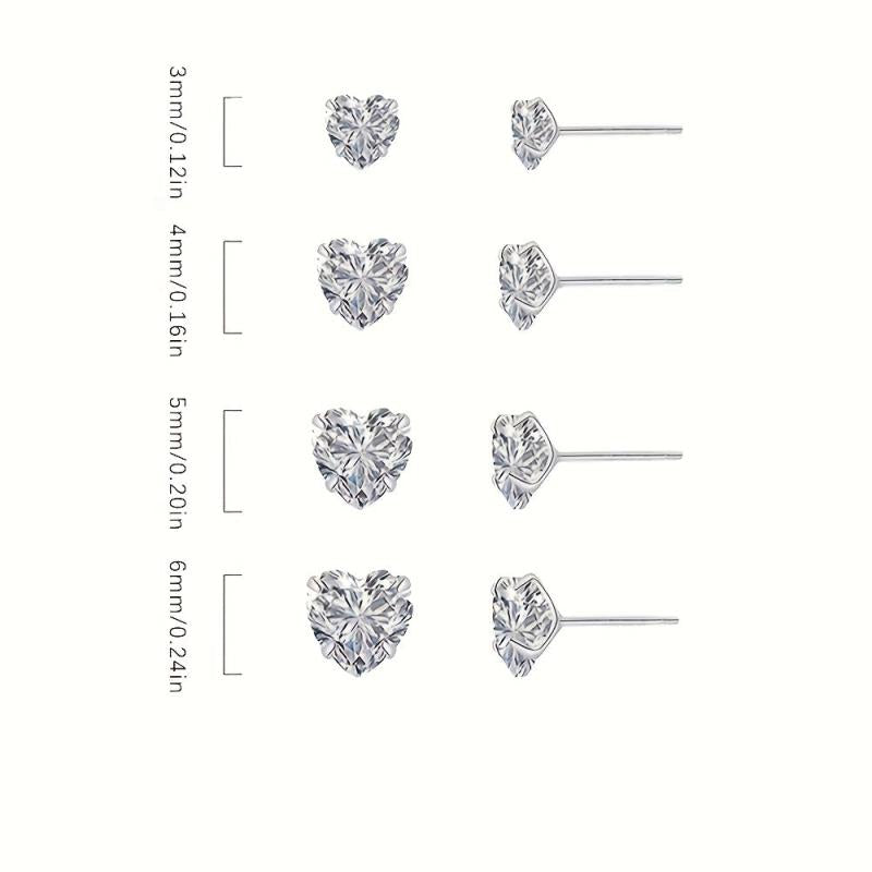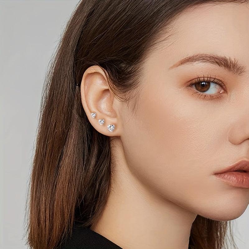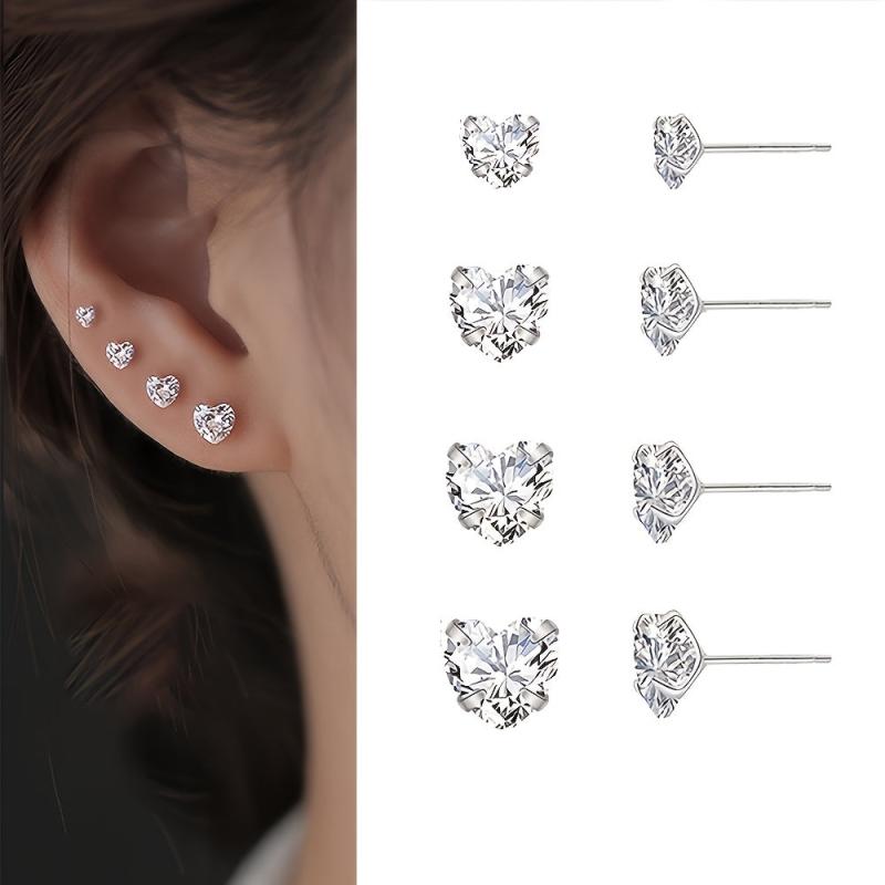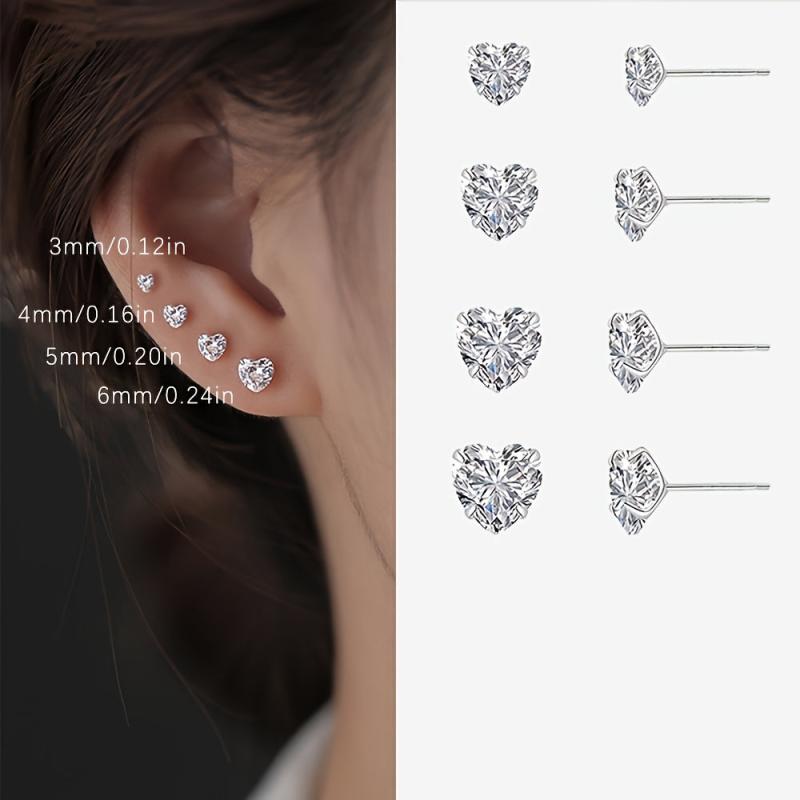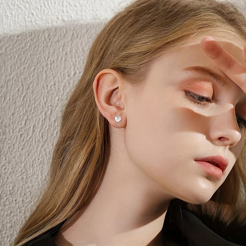 These hypoallergenic silver ear studs feature a love heart design with synthetic zirconia. They are silver plated, lightweight at 0.2g, and perfect for daily wear or as a gift for special occasions.