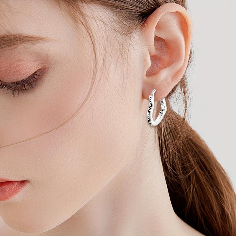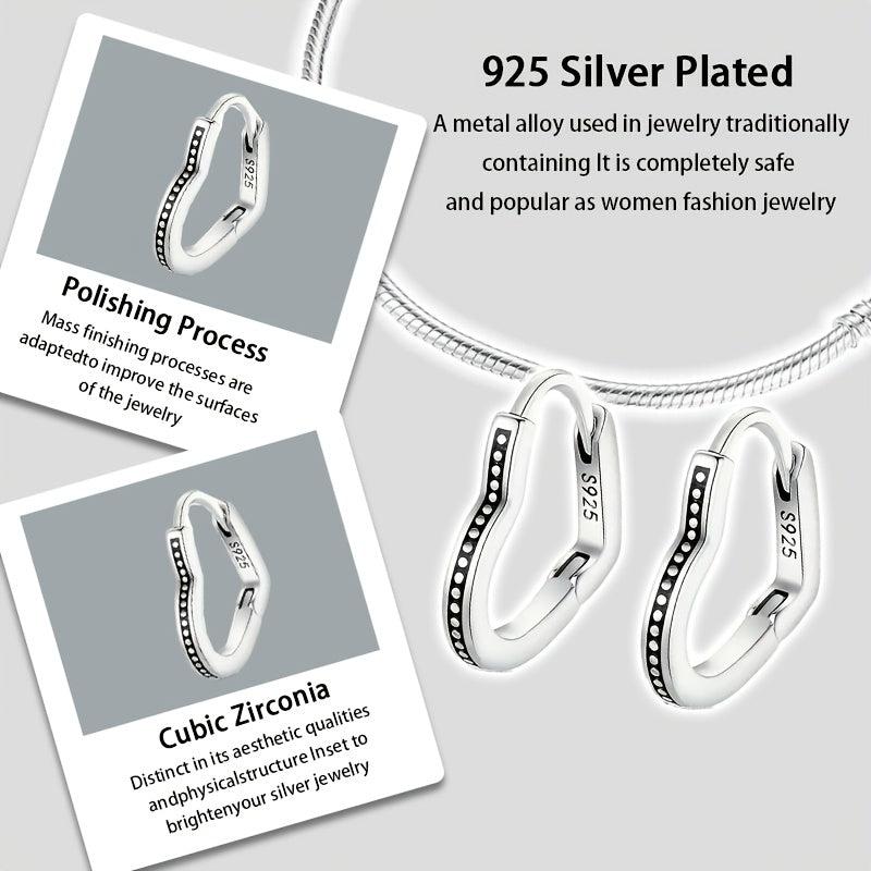 These heart-shaped hoop earrings are made from 925 sterling silver and feature stunning cubic zirconia inlay. They are lightweight at just 3g, making them comfortable for everyday wear. The perfect gift for a special woman in your life.
