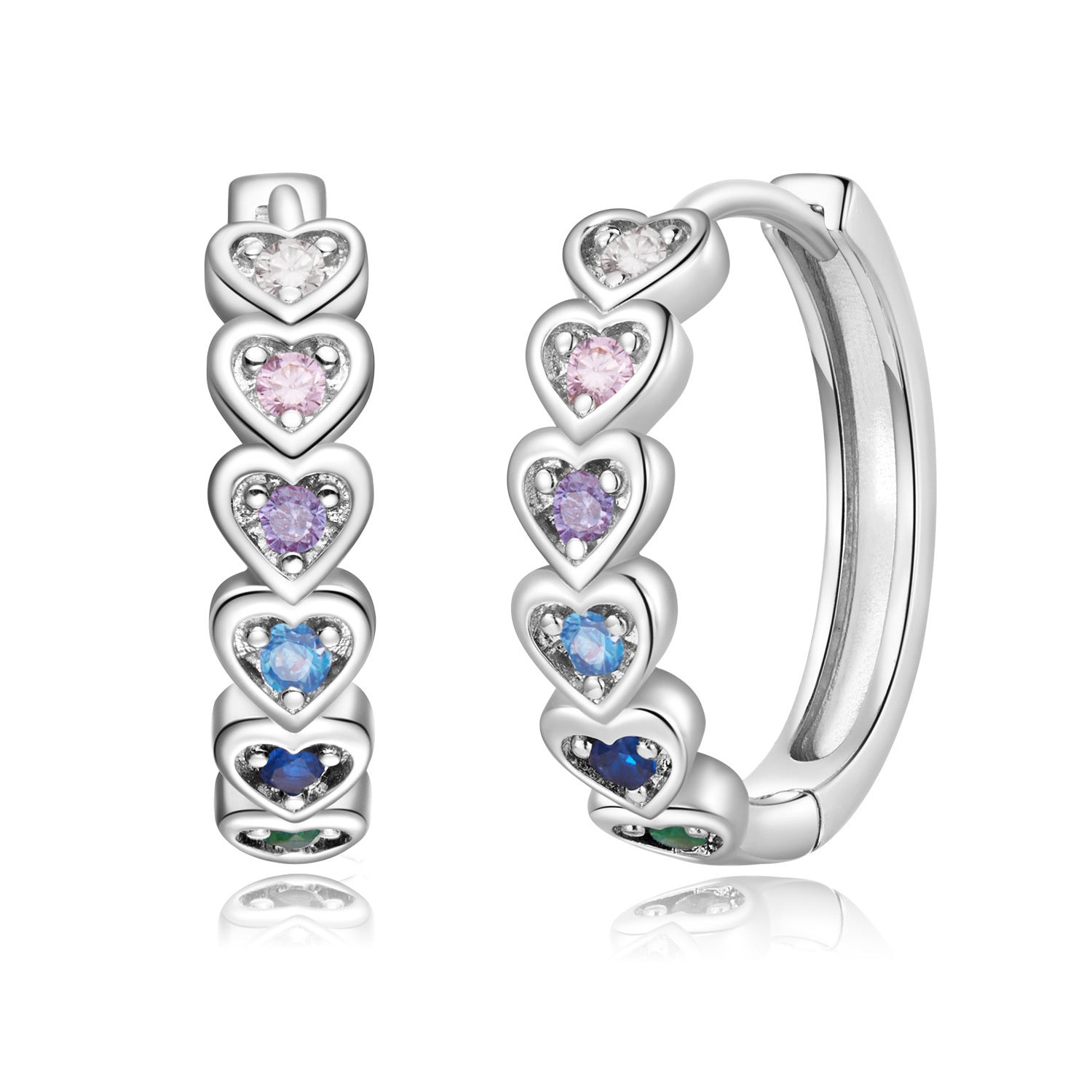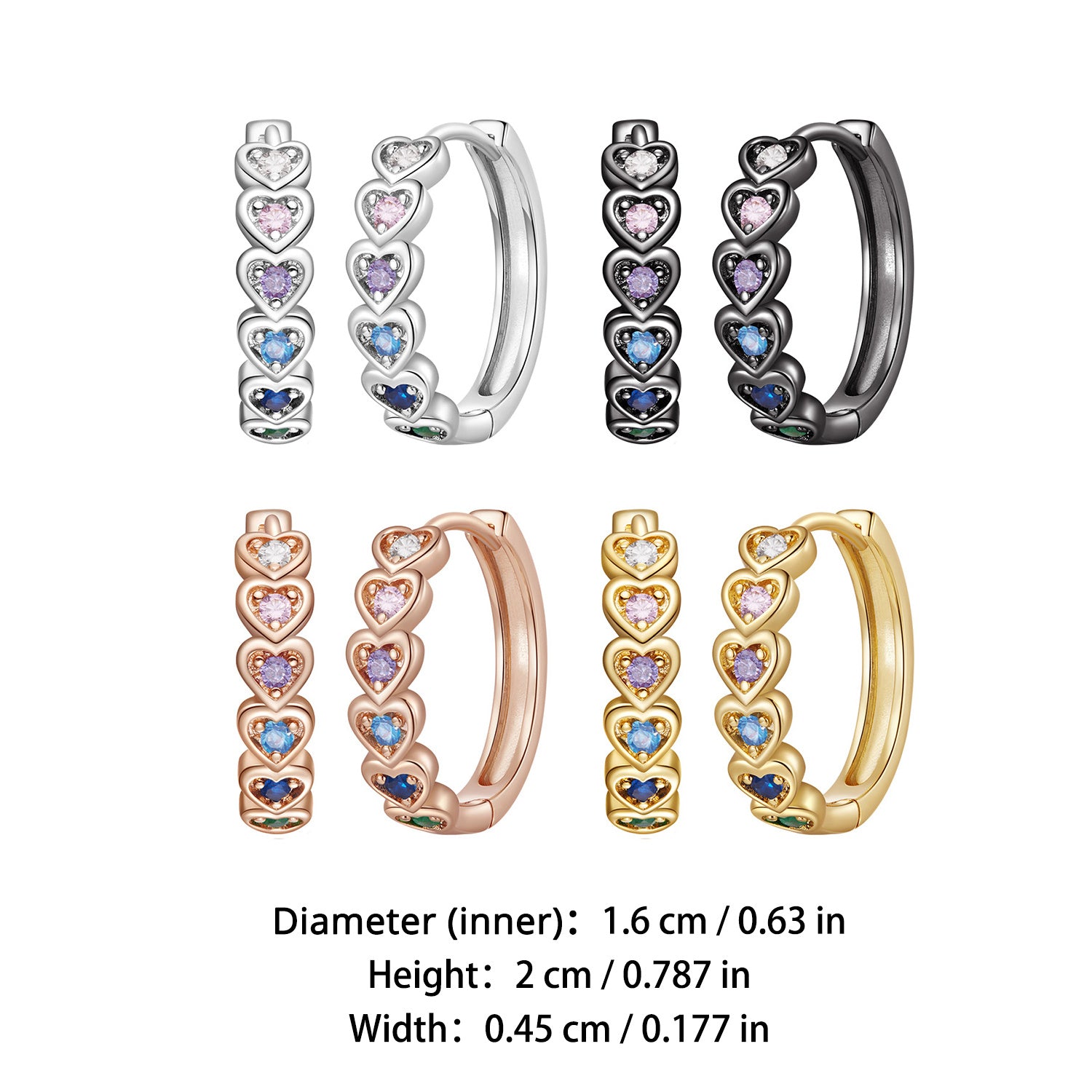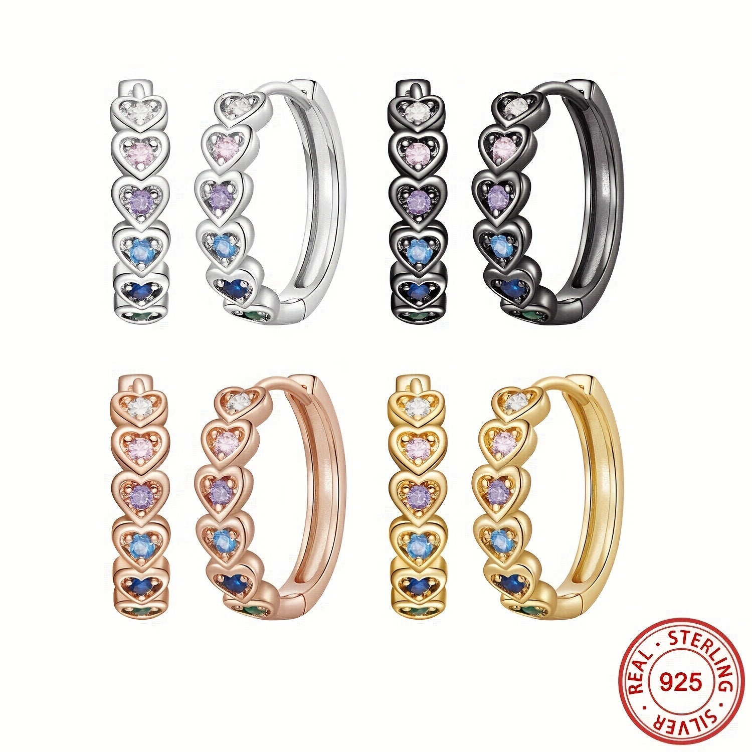 Add a touch of elegance to your look with these sterling silver hoop earrings featuring a heart shape pattern and sparkling zircon accents. Perfect for gifting or everyday wear.