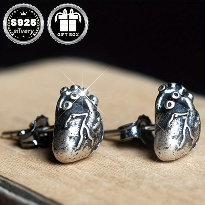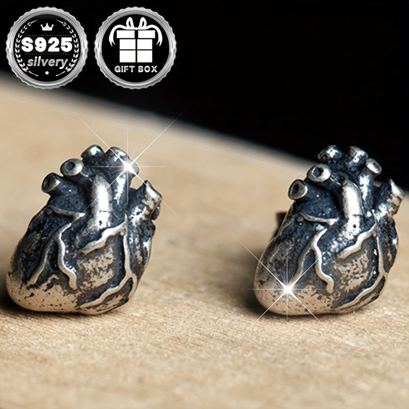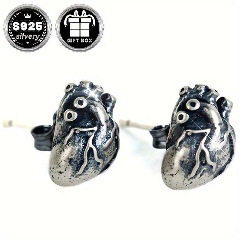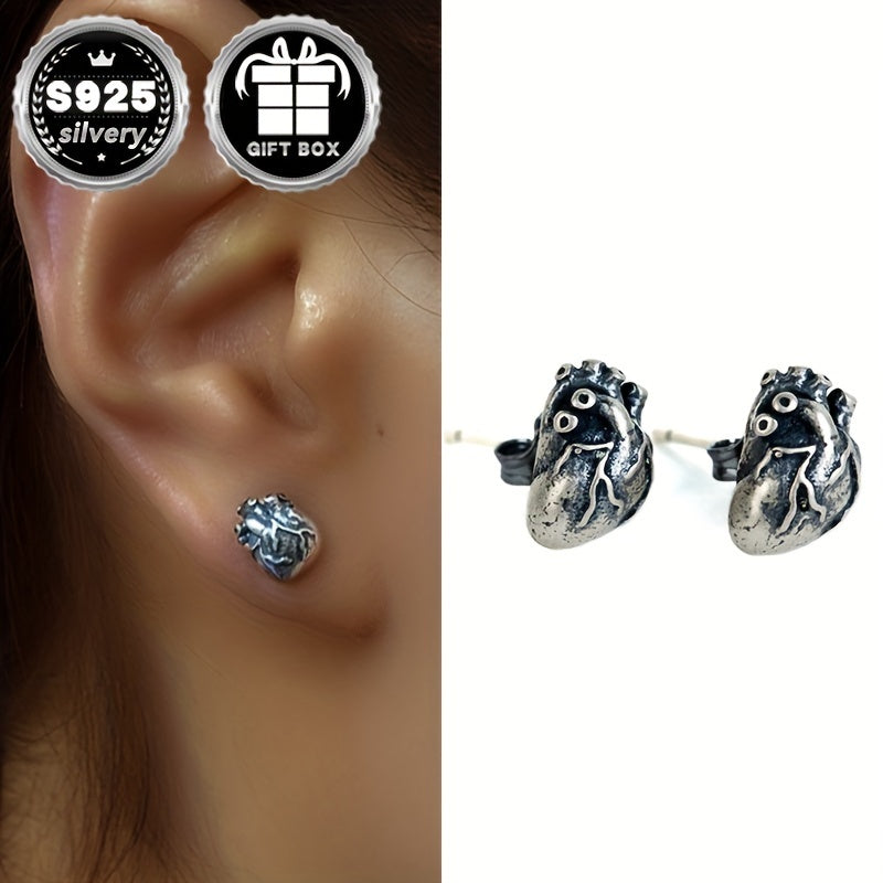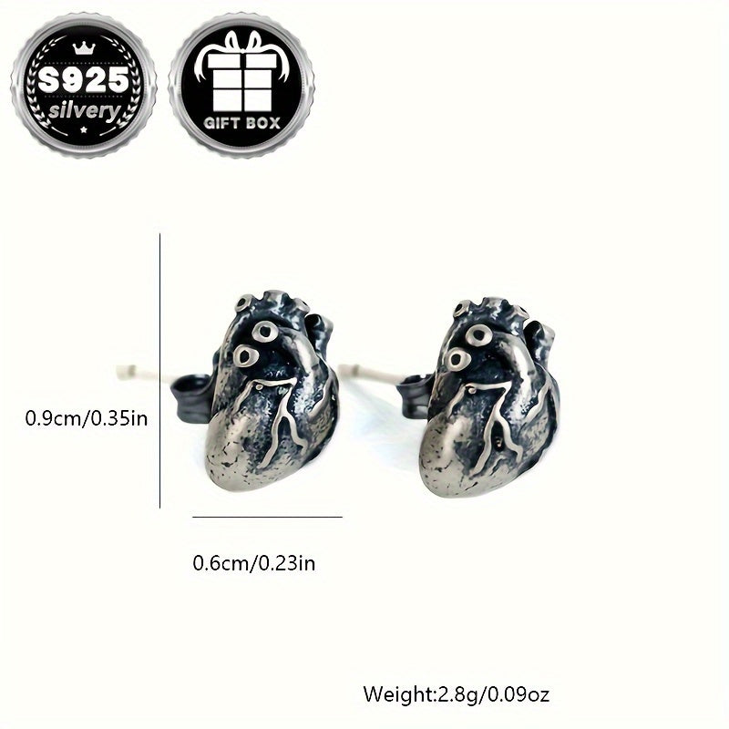 These 925 sterling silver heart shape stud earrings are perfect for adding a touch of retro gothic punk style to your Halloween party or Holi celebration. Weighing about 2.8g, they are lightweight and comfortable to wear.