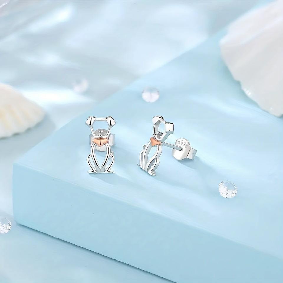 These adorable 925 Sterling Silver earrings feature a hollow design of a dog puppy, perfect for dog lovers. The retro style and delicate craftsmanship make them a great gift for any occasion. Suitable for daily wear or casual outings.