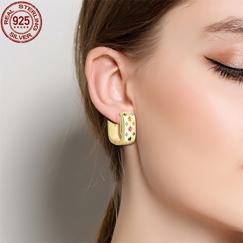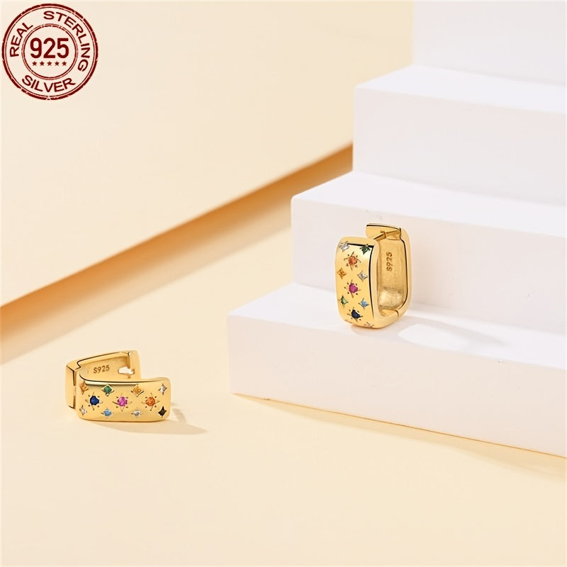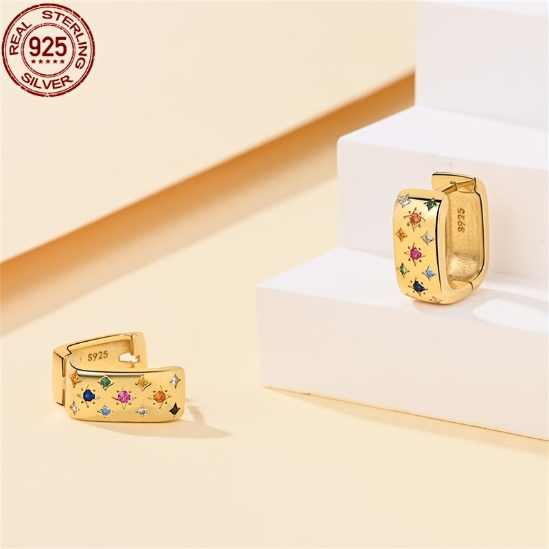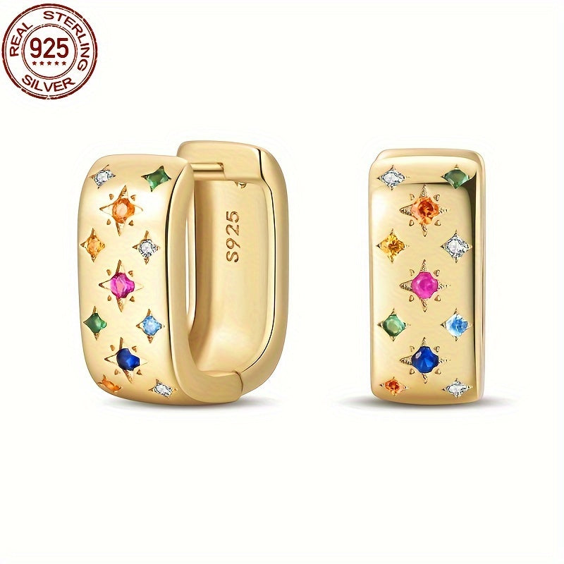Add a touch of celestial charm to your look with these stunning hoop earrings featuring a star design and multicolor zirconia stones. Perfect for vacation style and gifting on Valentine's Day or any occasion.