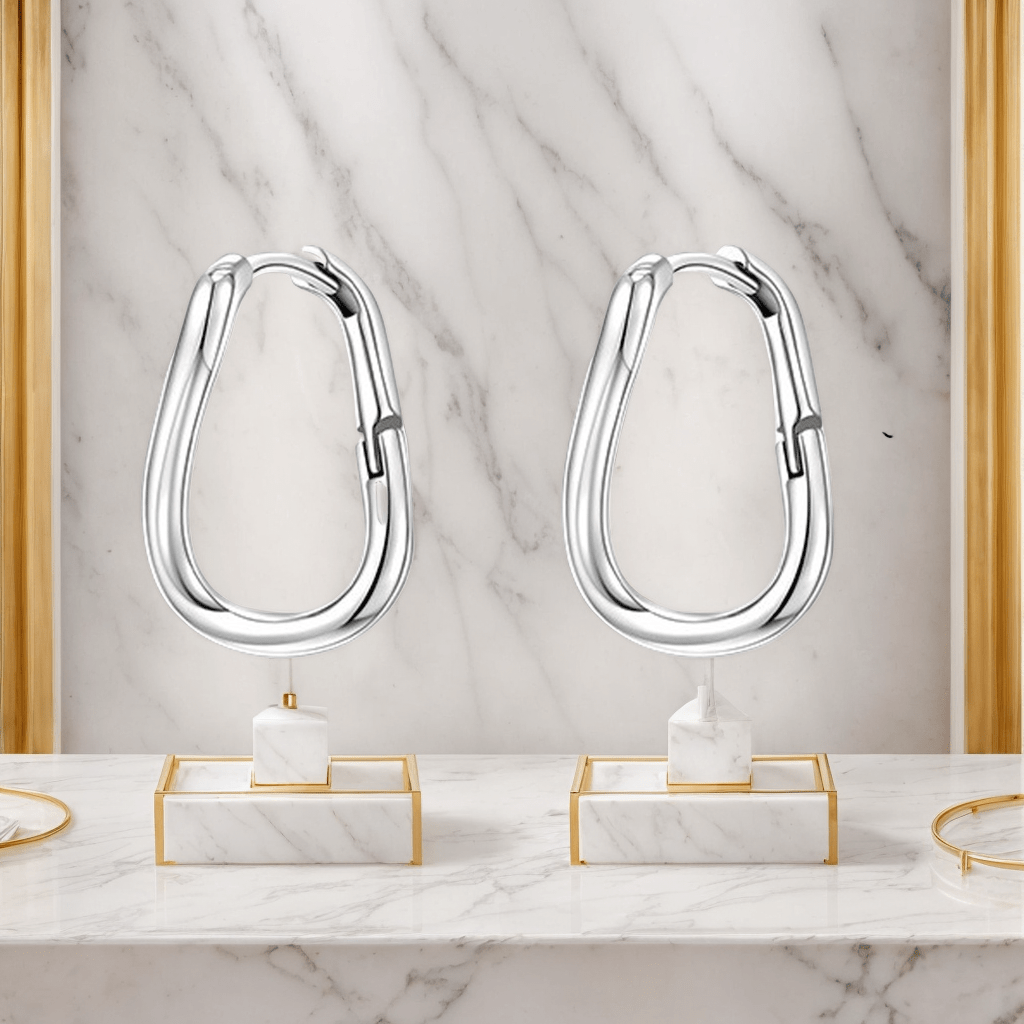 These elegant earrings are crafted from 925 silver, making them hypoallergenic and perfect for sensitive ears. The minimalist design adds a fashionable touch to any outfit.