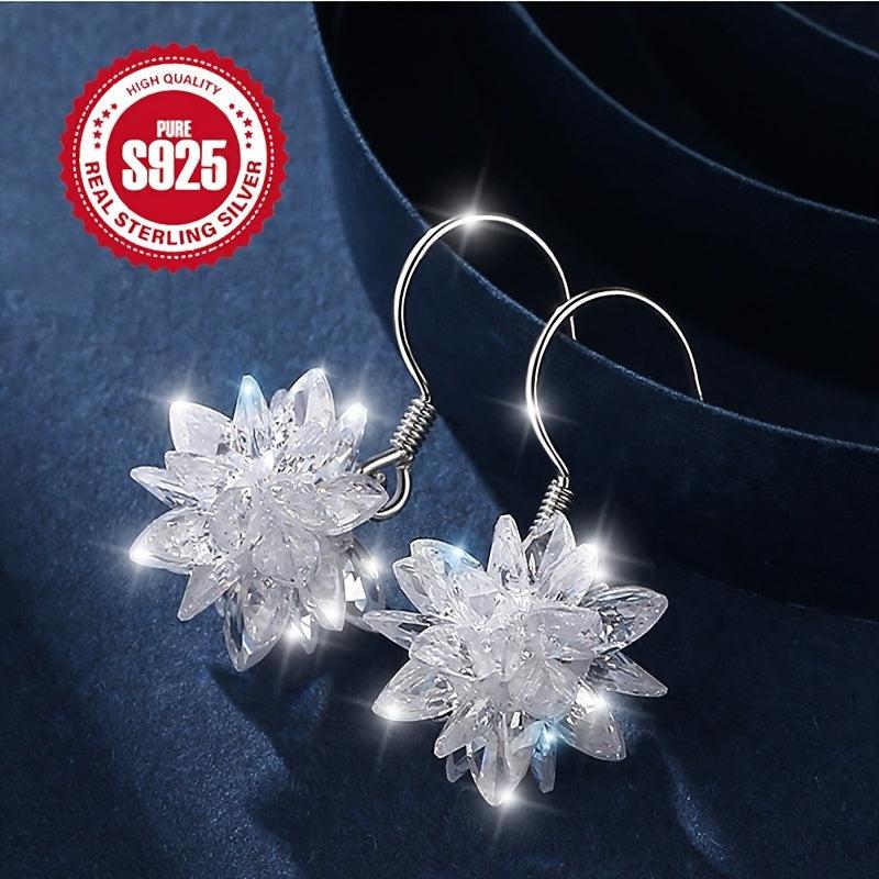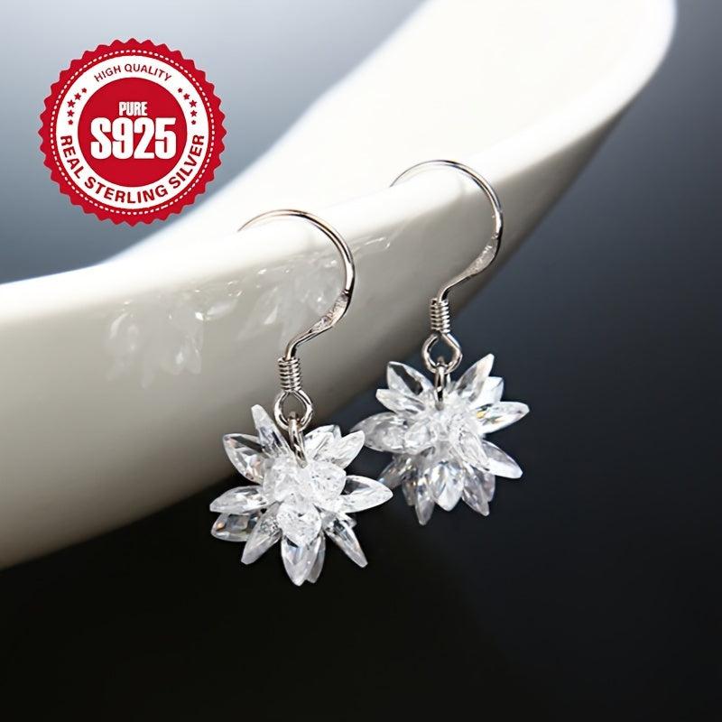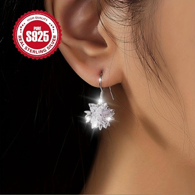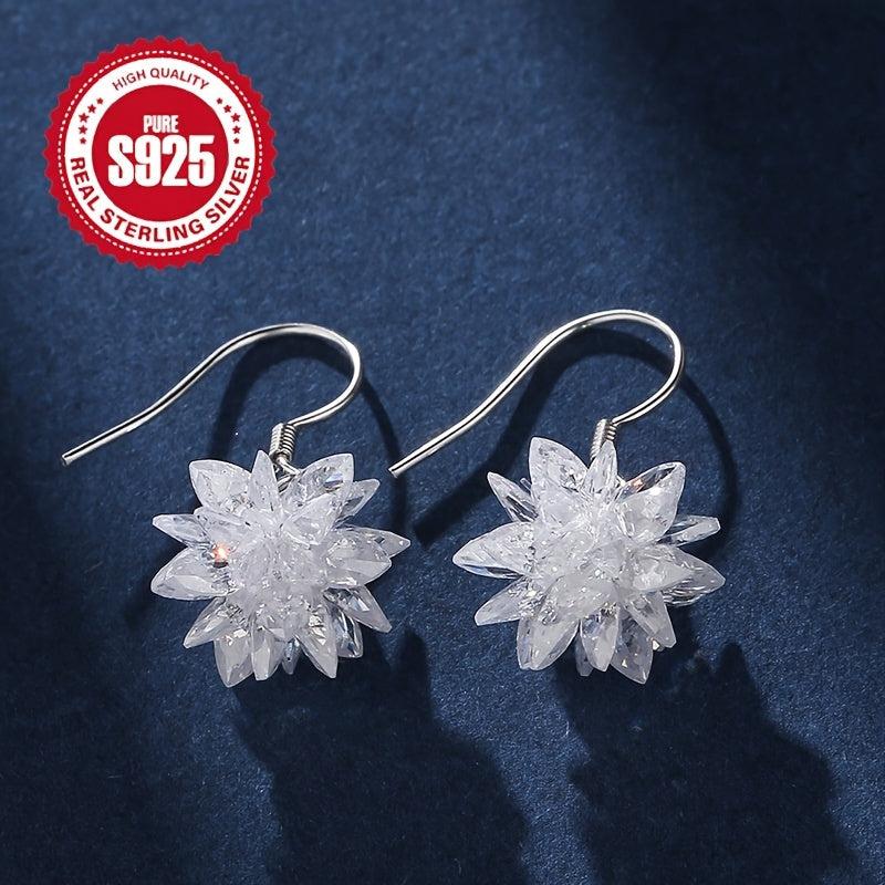 Elegant 925 sterling silver earrings with hypoallergenic zirconia in ice flower design. Perfect for everyday wear and vacation outfits.