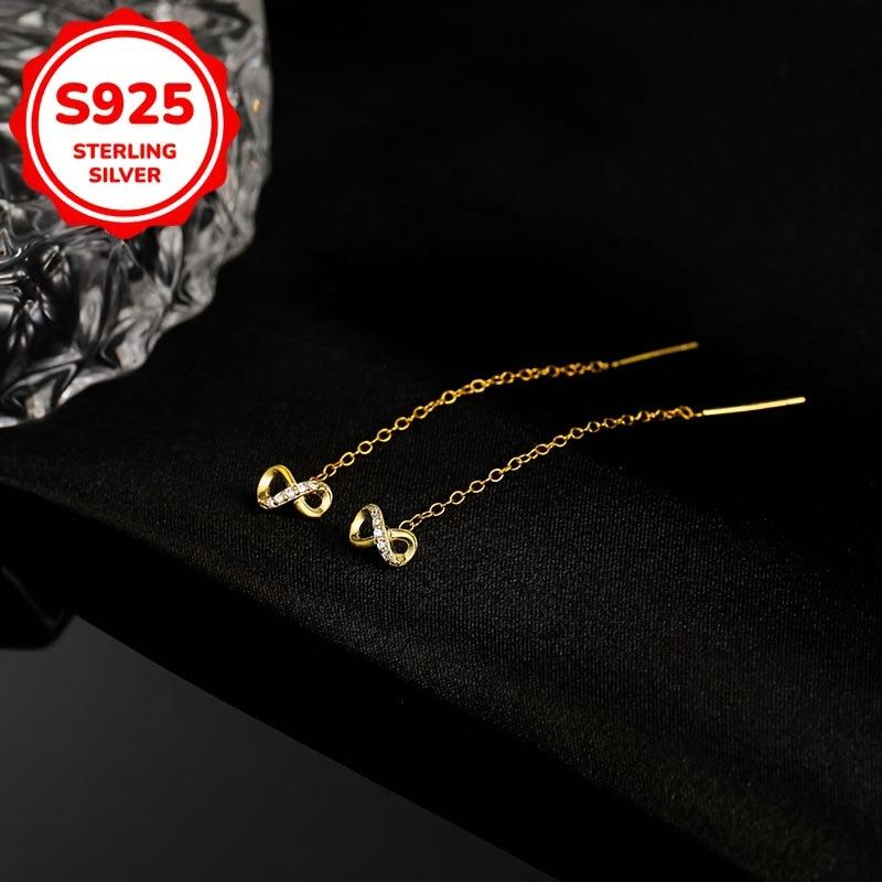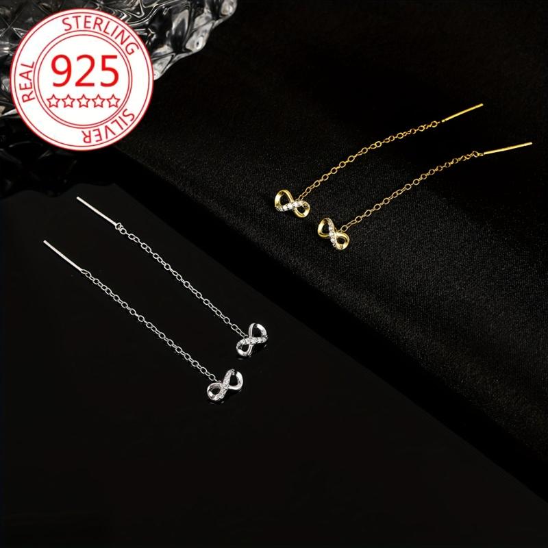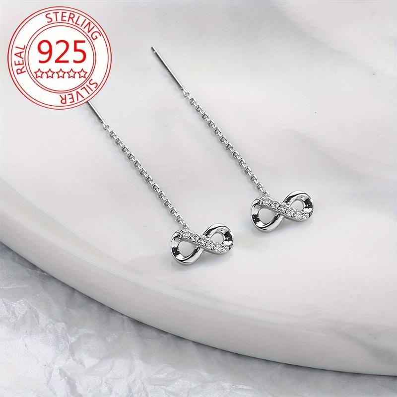 Add a touch of elegance to your look with these sterling silver earrings featuring an infinity symbol and sparkling cubic zirconia. Perfect for daily wear, parties, Christmas, and anniversary celebrations.