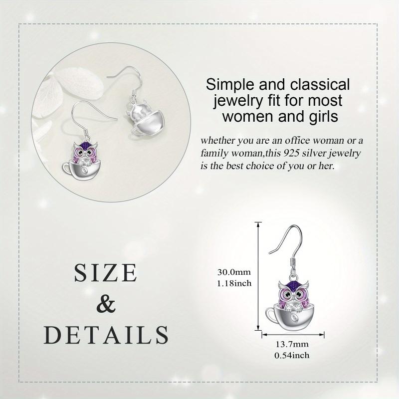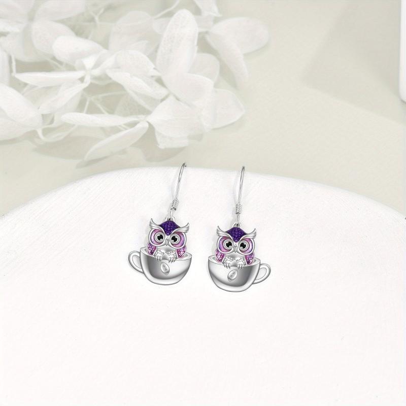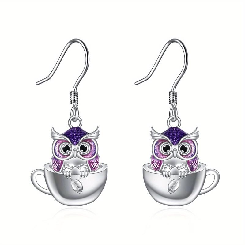 These adorable owl teacup earrings are made of 925 sterling silver. Perfect for a birthday gift for women.