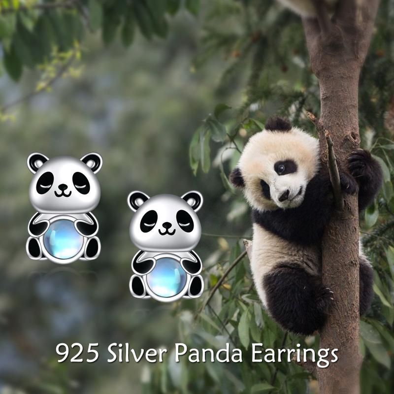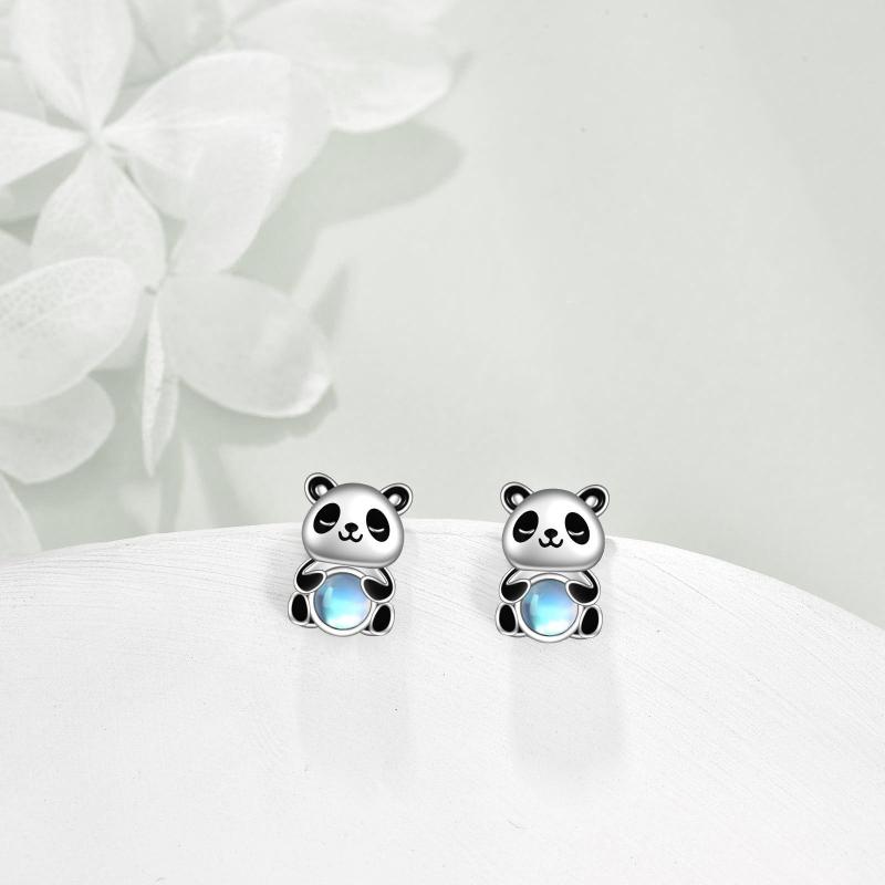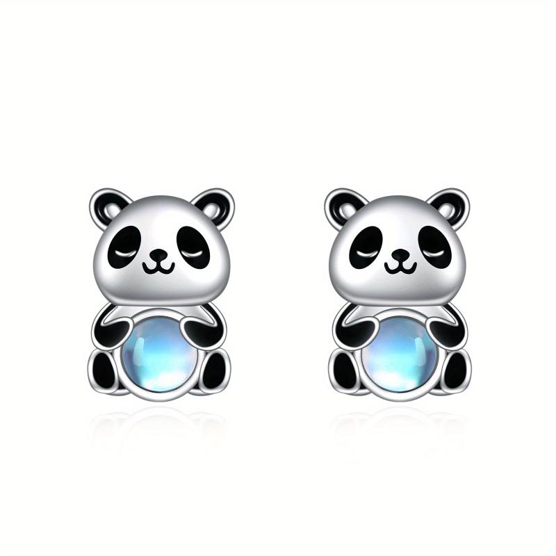 Adorable panda earrings crafted from 925 sterling silver with moonstone accents, perfect for a birthday gift for women.