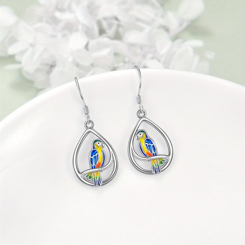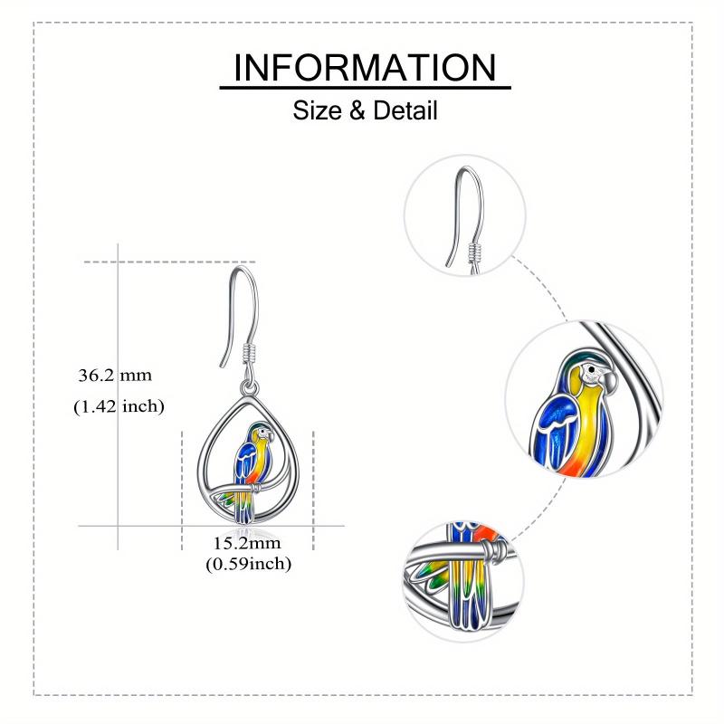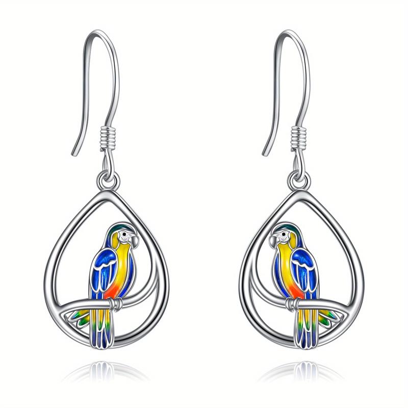 Add a touch of whimsy to your look with these parrot dangle earrings. Made from 925 sterling silver, these earrings feature a charming parrot design that is perfect for bird lovers. Ideal for Christmas or everyday wear, these earrings are a fun and stylish accessory.