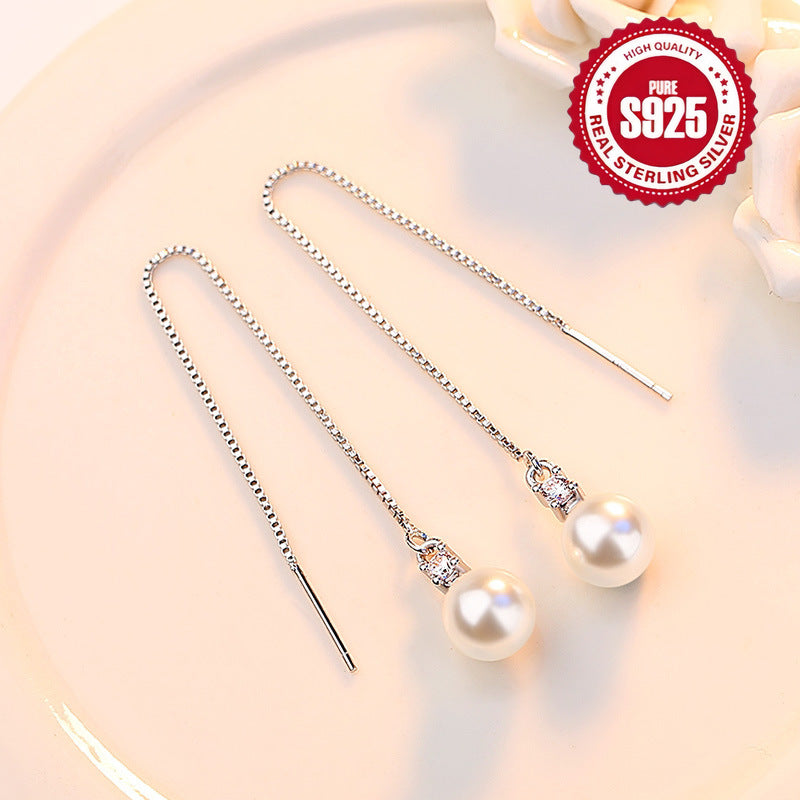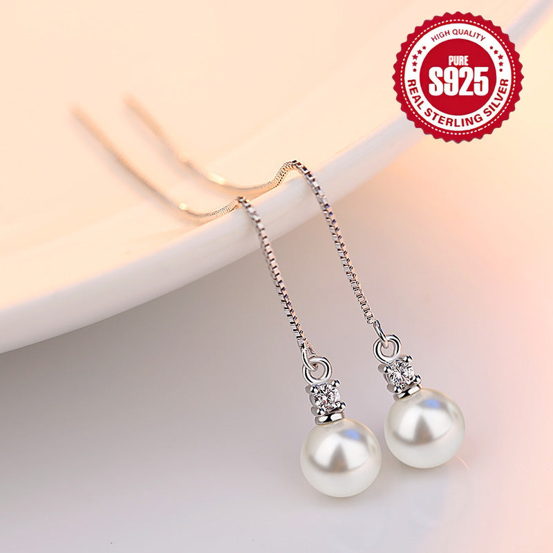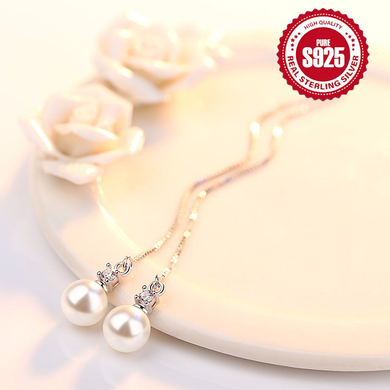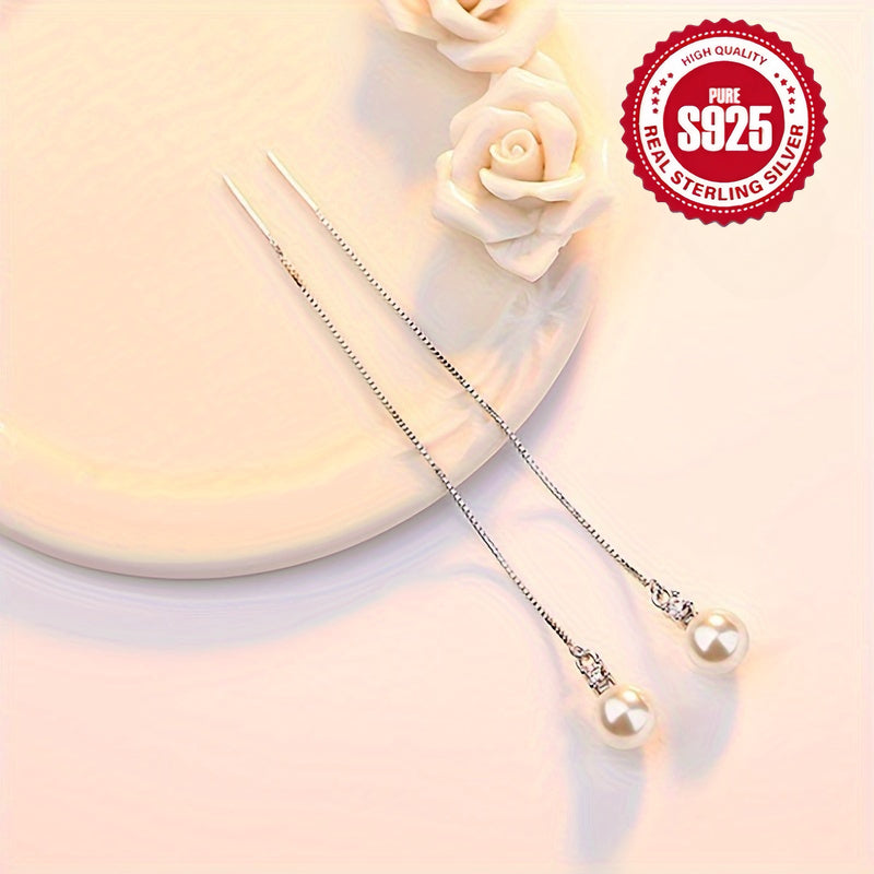 These elegant 925 sterling silver earrings are hypoallergenic and adorned with imitation pearls, making them a fashionable choice for weddings or special occasions.