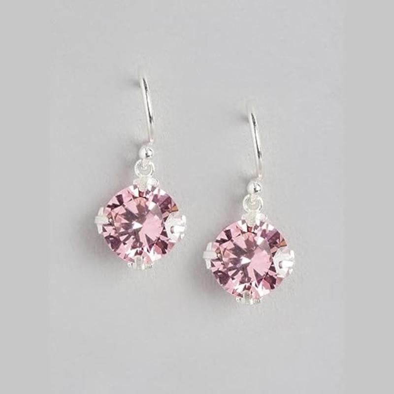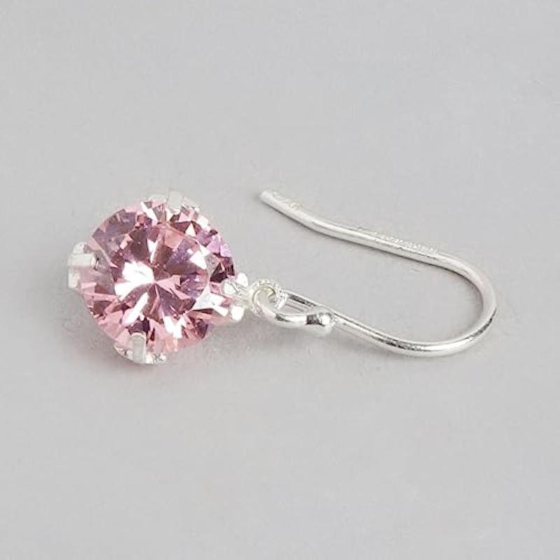 Elegant 925 Sterling Silver earrings featuring circular pink cubic zirconia drops plated with rhodium for a dazzling look.