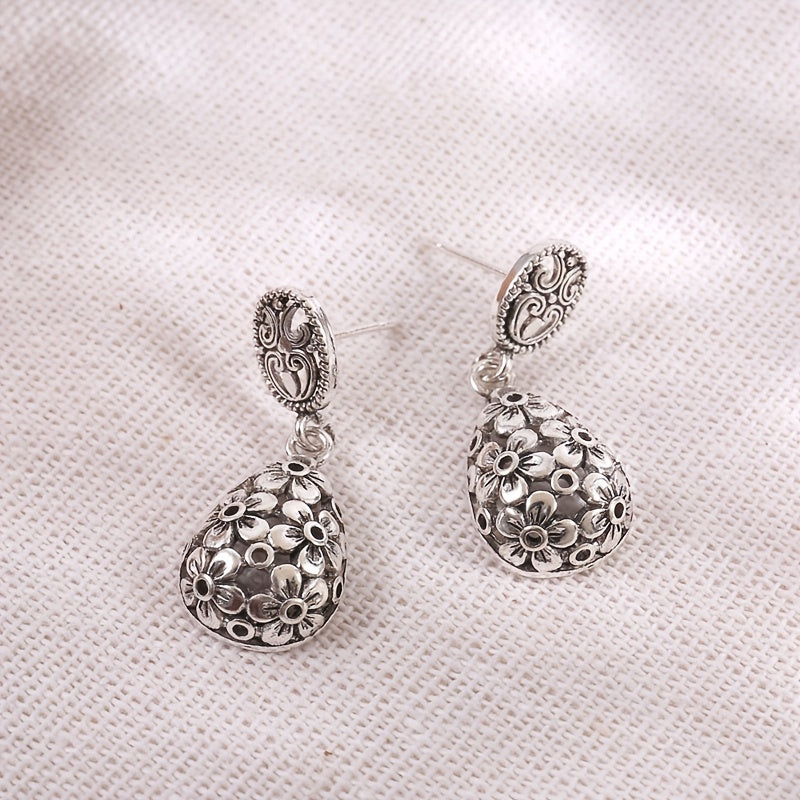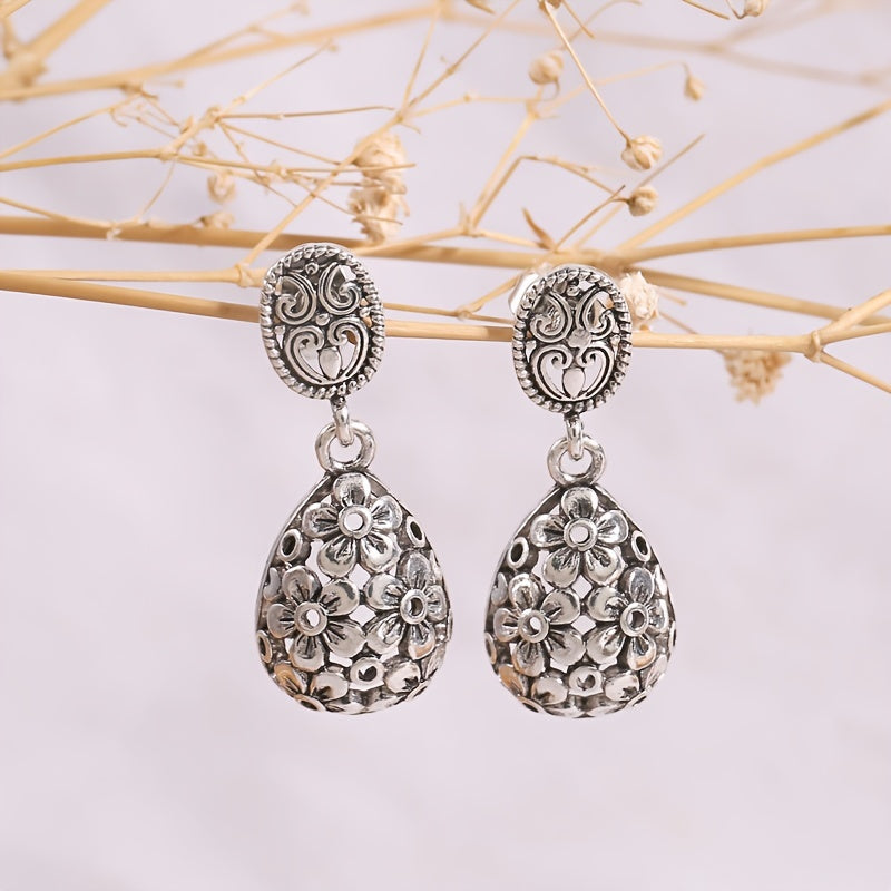 These beautiful 925 silver plated drop earrings feature a floral pattern with romantic flower spheres. They make a perfect gift for women, girls, or lovers on occasions like Christmas or birthdays.