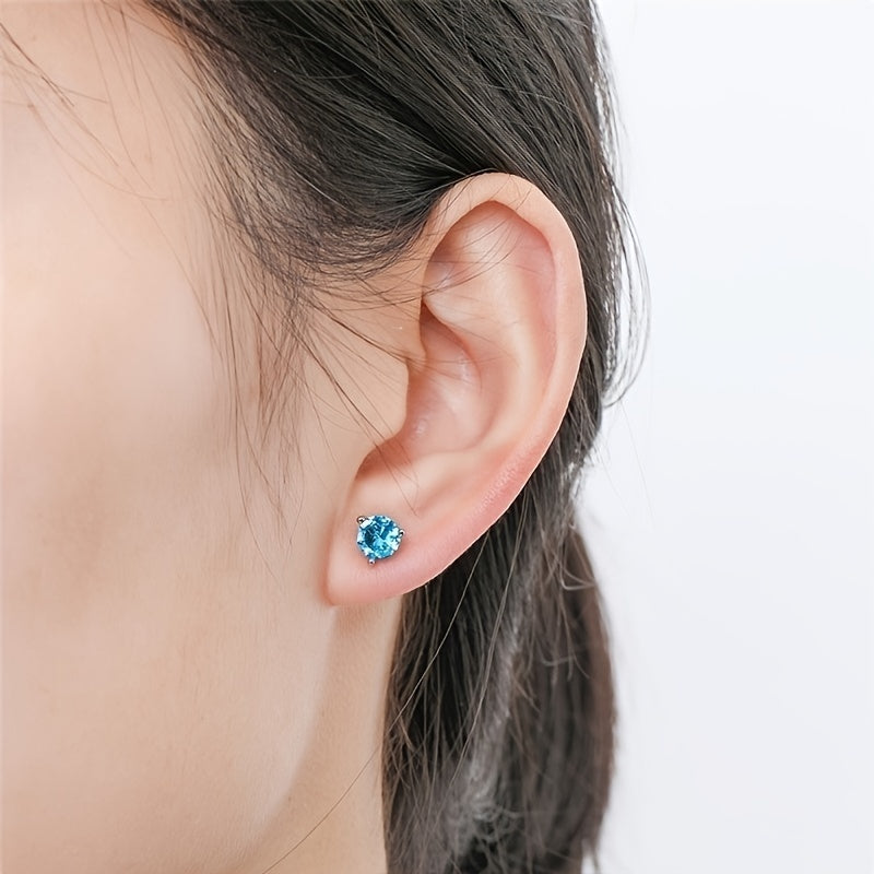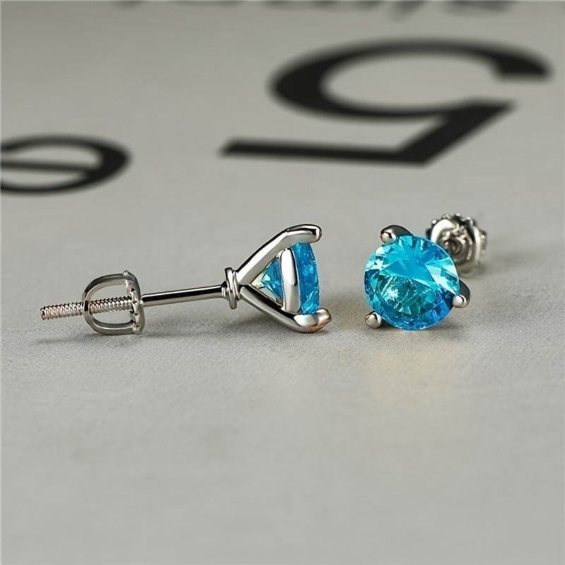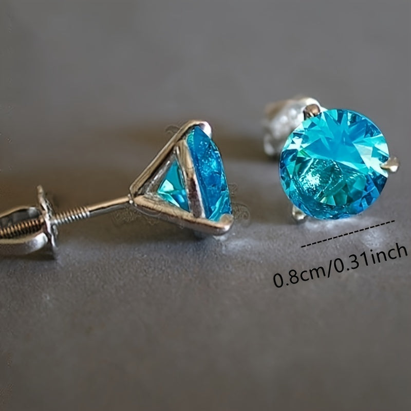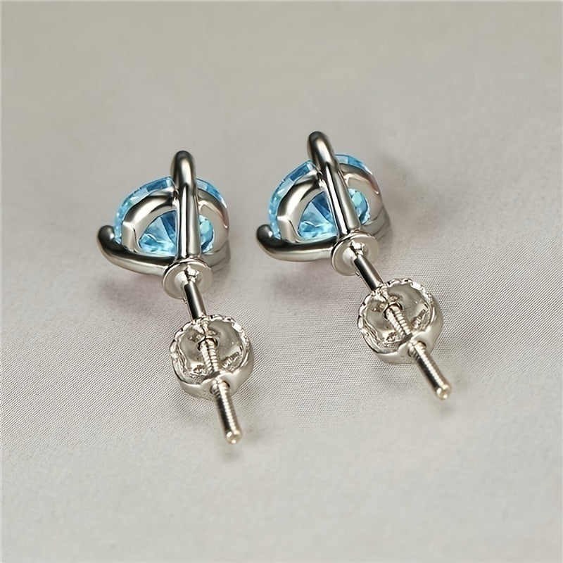 Elegant 925 silver plated stud earrings with faux sapphire zircon, perfect for adding a touch of sophistication to any outfit.