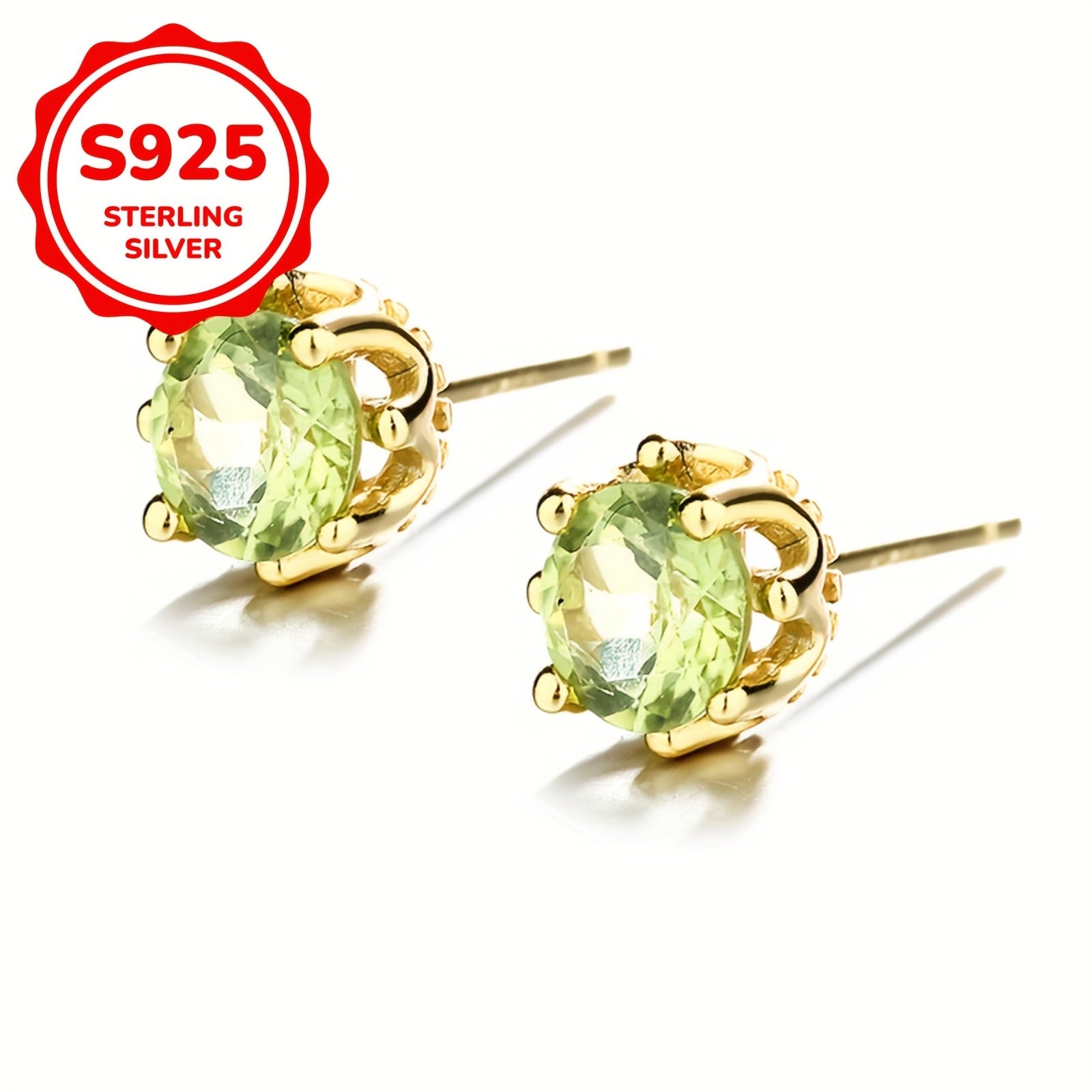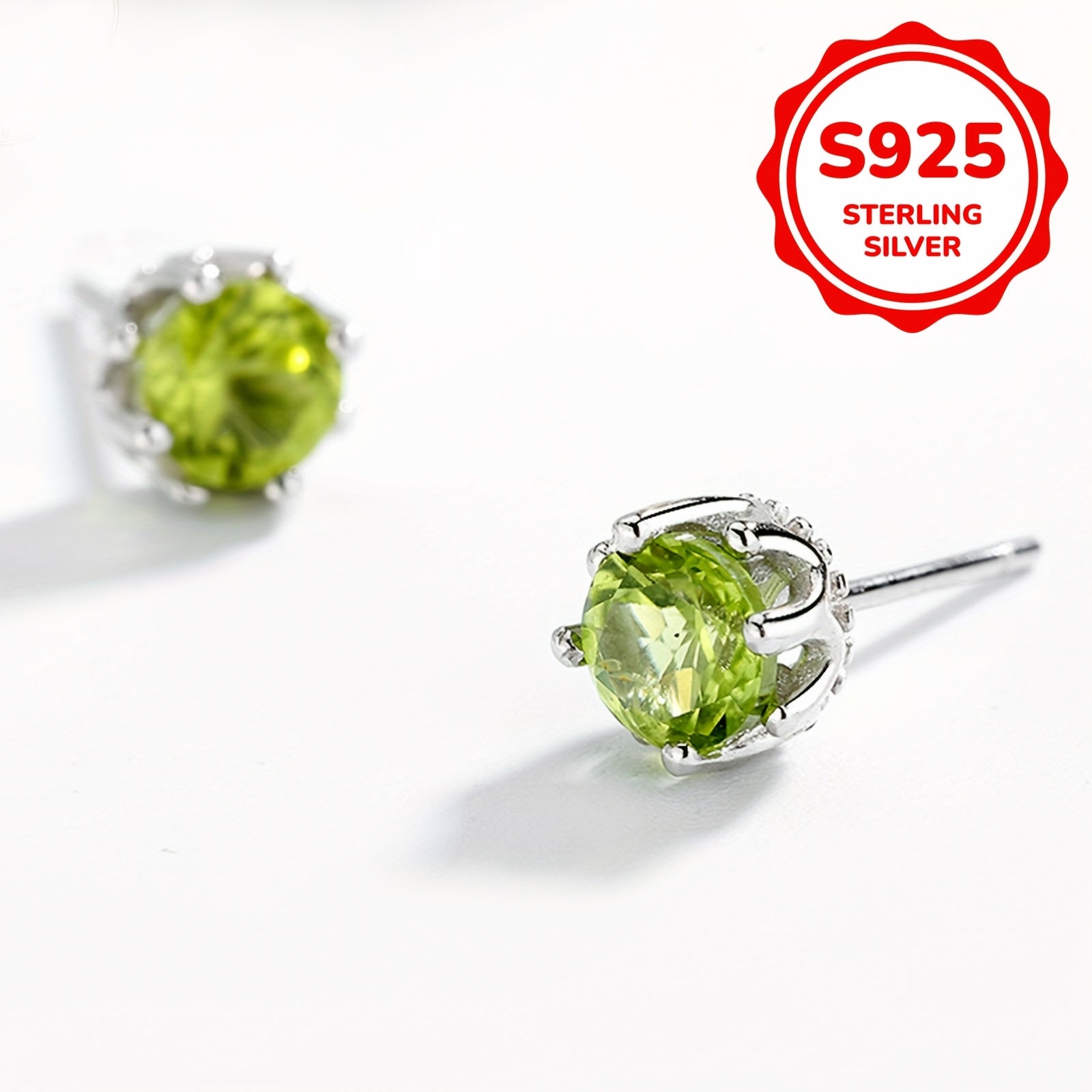 Enhance your look with these stunning vintage peridot stud earrings. Crafted with 925 silver plating, these earrings feature natural green peridot gemstones, making them a perfect birthstone accessory.
