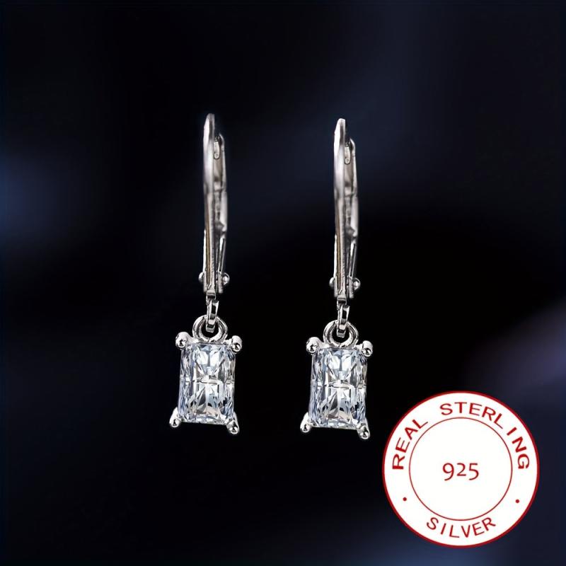 Elegant and timeless, these silver earrings feature a sparkling rectangular zirconia stone held in place by classic four claw settings. The French clip design adds a touch of sophistication to any outfit.