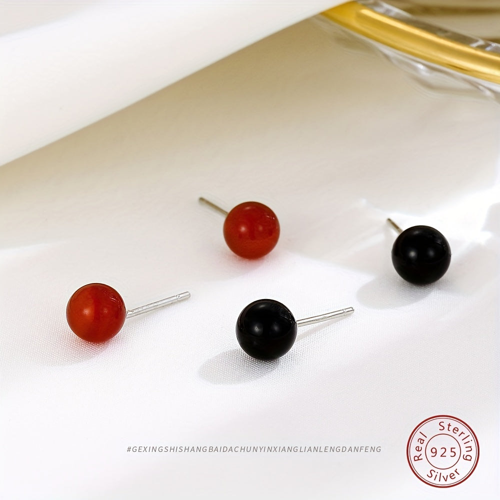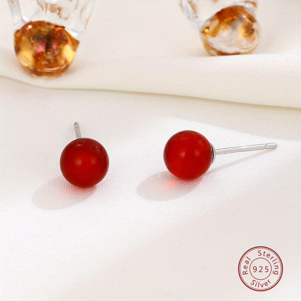 Add a touch of elegance to your look with these versatile sterling silver stud earrings featuring natural red jade accents. Perfect for women and girls.