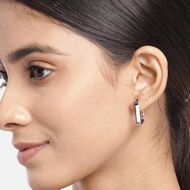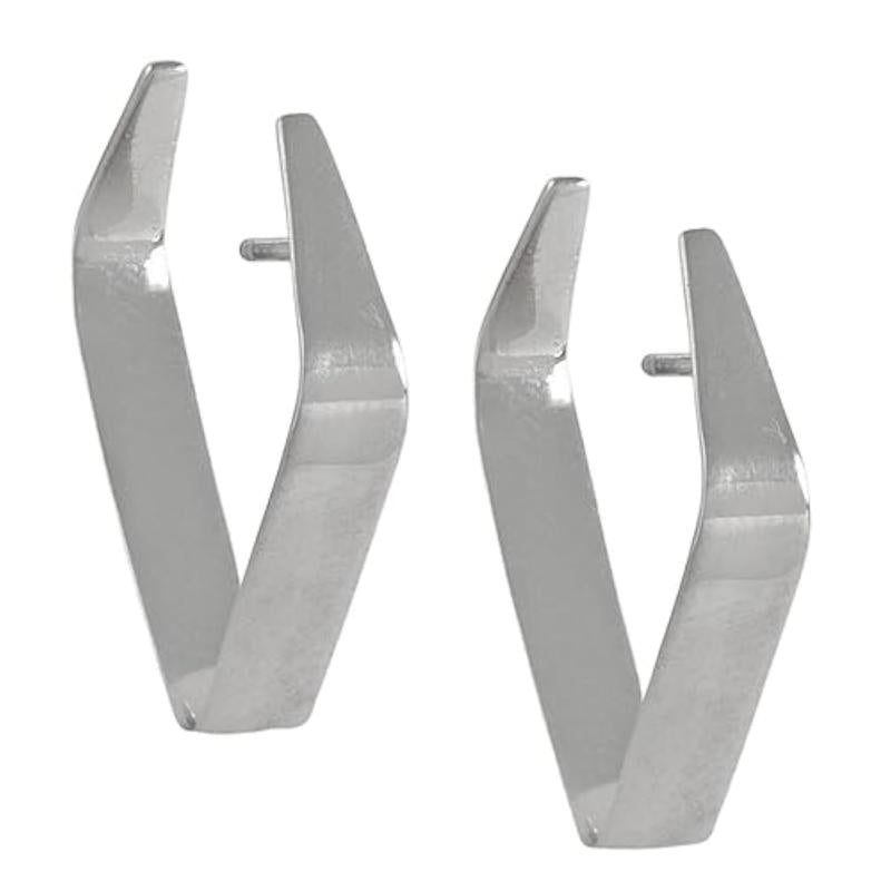 Elegant and stylish rectangular hoops earrings made of 925 sterling silver with a rhodium plating. Features a 925 hallmark for authenticity.